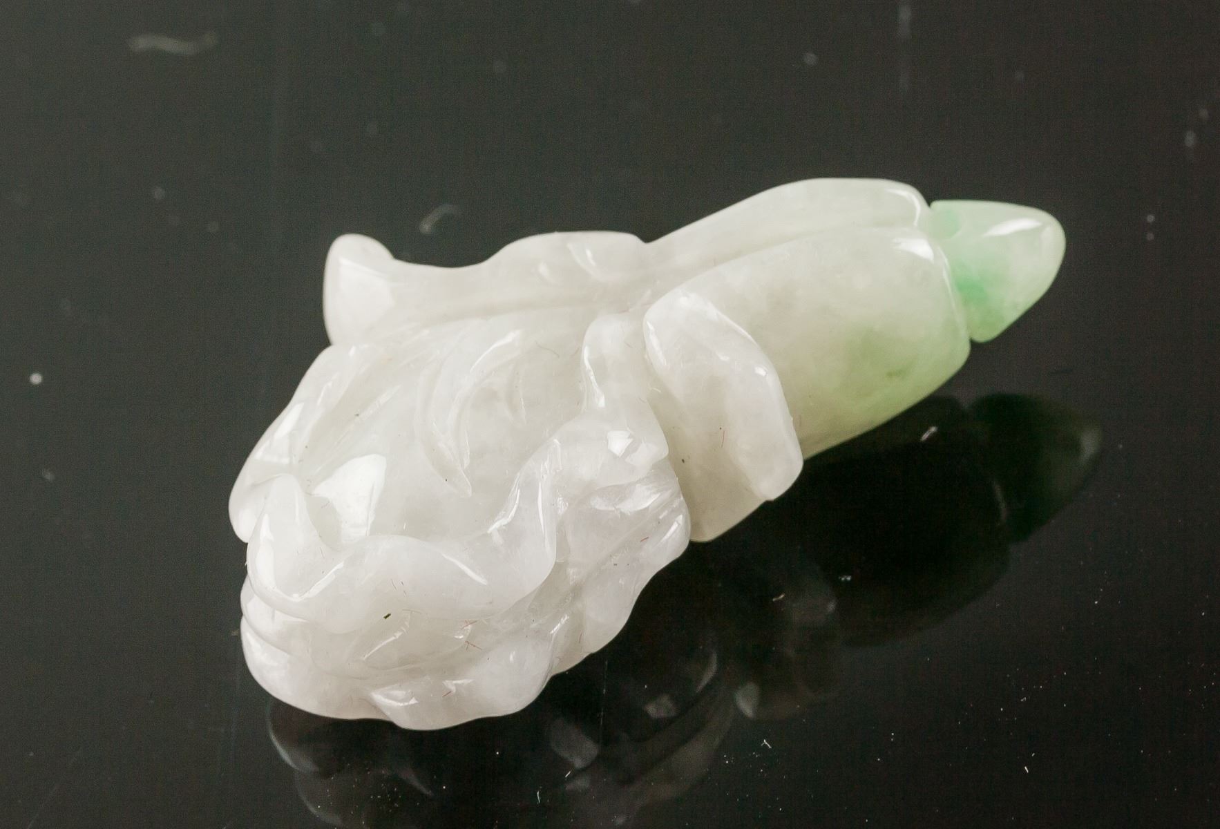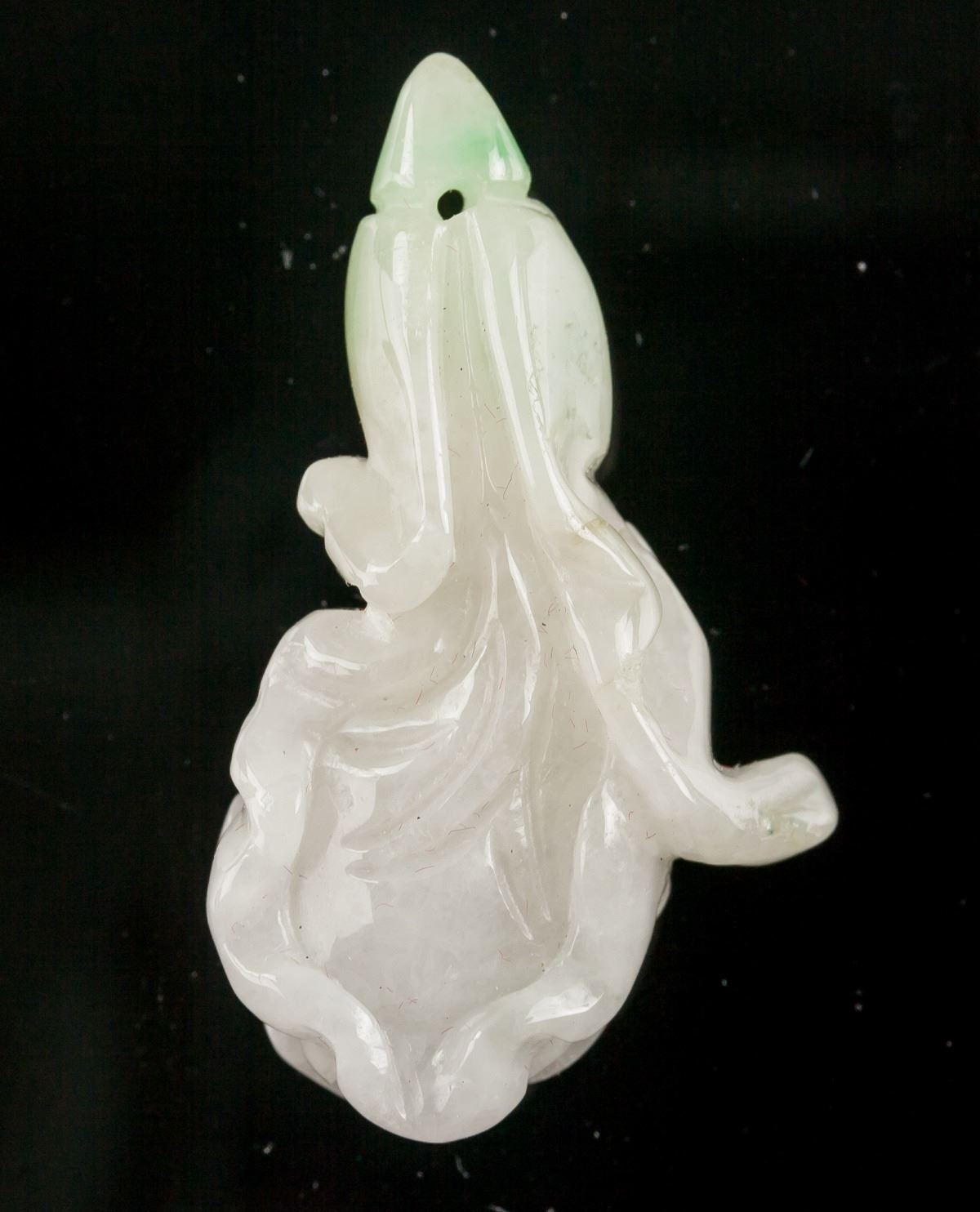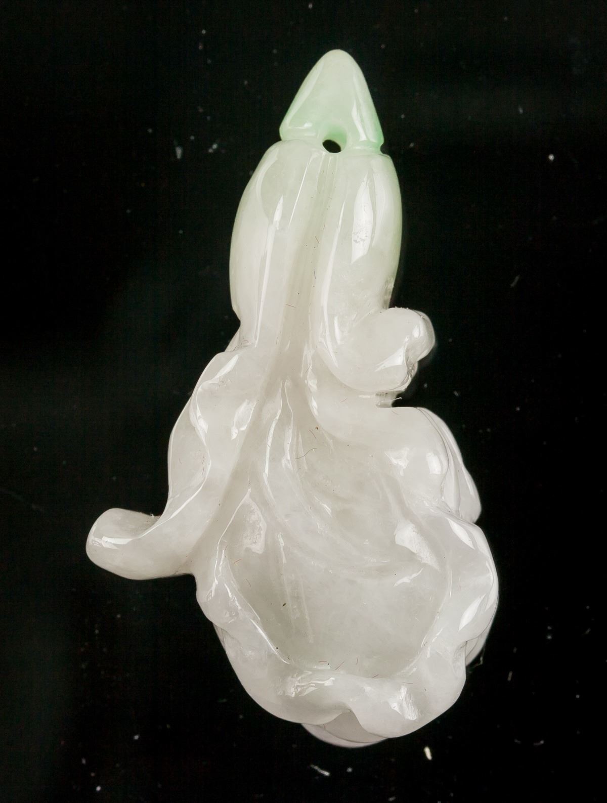 Burma white jadeite carved pendant, featuring flower form, of white tone, pierced for suspension, 4 x 2.2 cm, 11 grams, density: 3.27