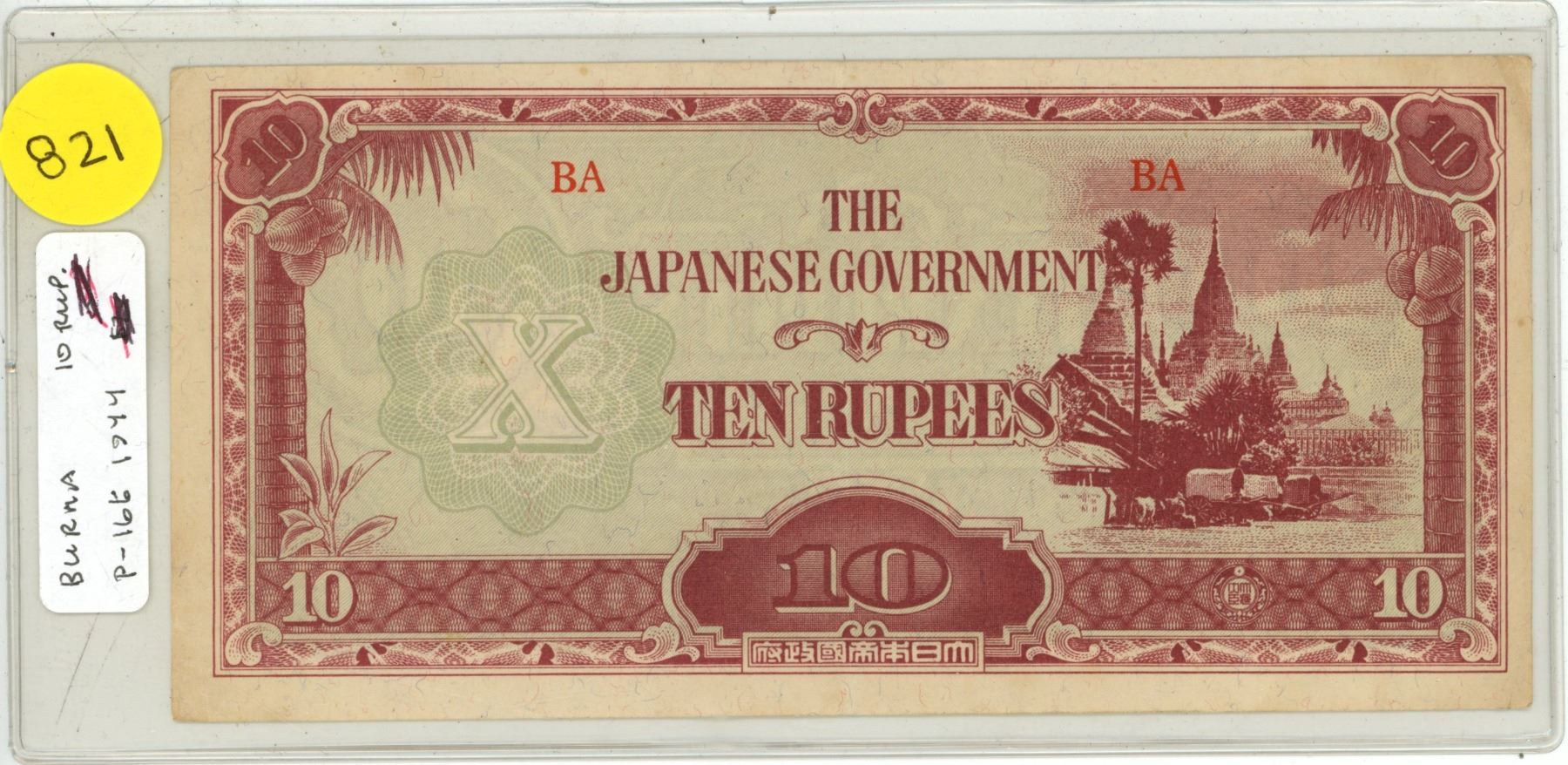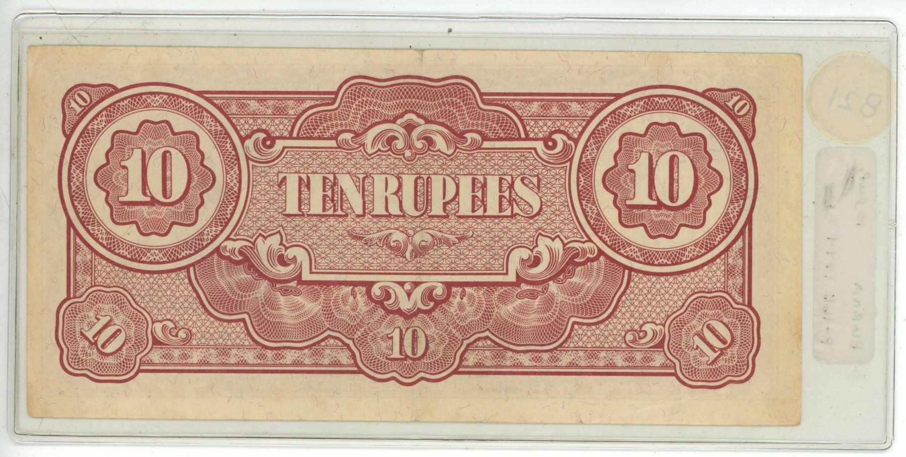 Burma. Japanese Invasion Money. Issued by the Japanese occupying forces. 1944 10 Rupees. VF.