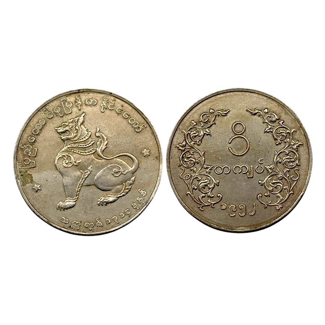 Burma (Myanmar), Nickle 1 Kyat, 11.67Grms, OBV: Burmese half-lion half-dragonfacing to left below date, REV: Value within sprays and date. (KM # 37). Extremely Fine.
