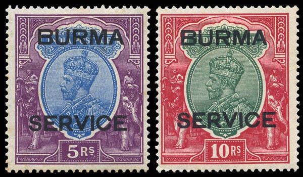 Burma, Officials, 1937, King George V, 3p to 10r complete. Scott O1-O14. SG O1/O14 £1,000 ($1,280), F-VF