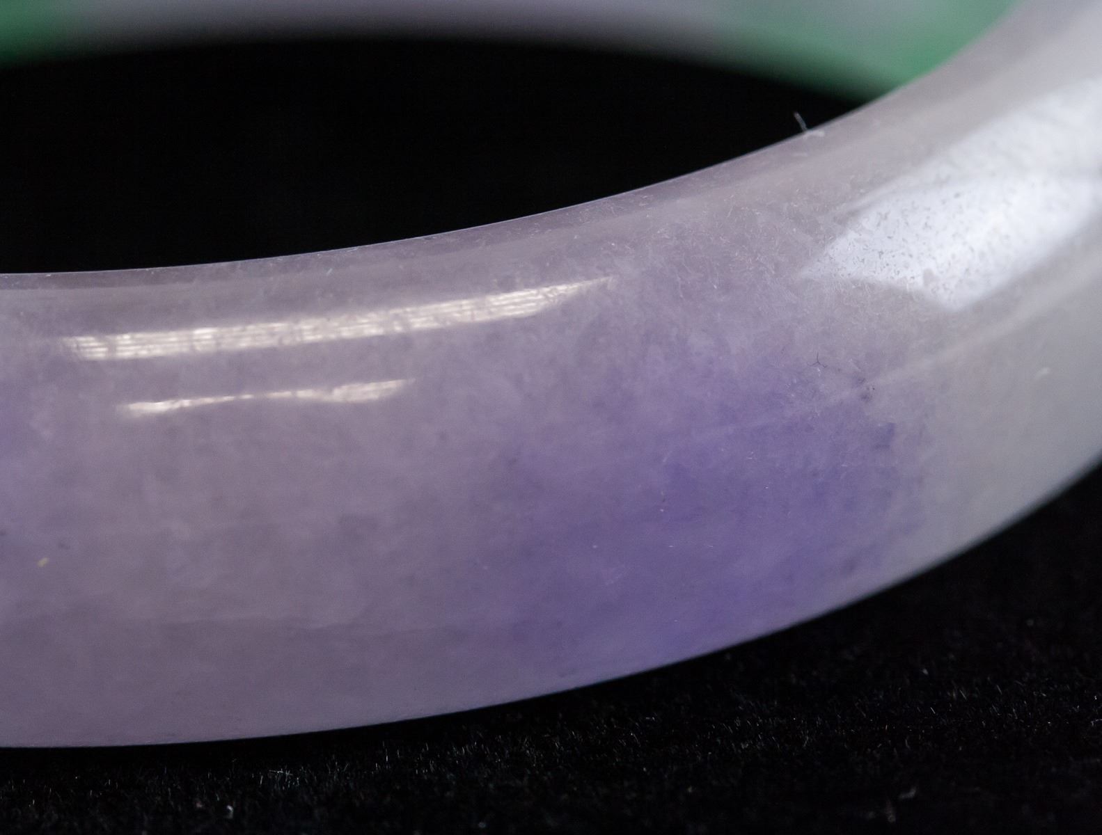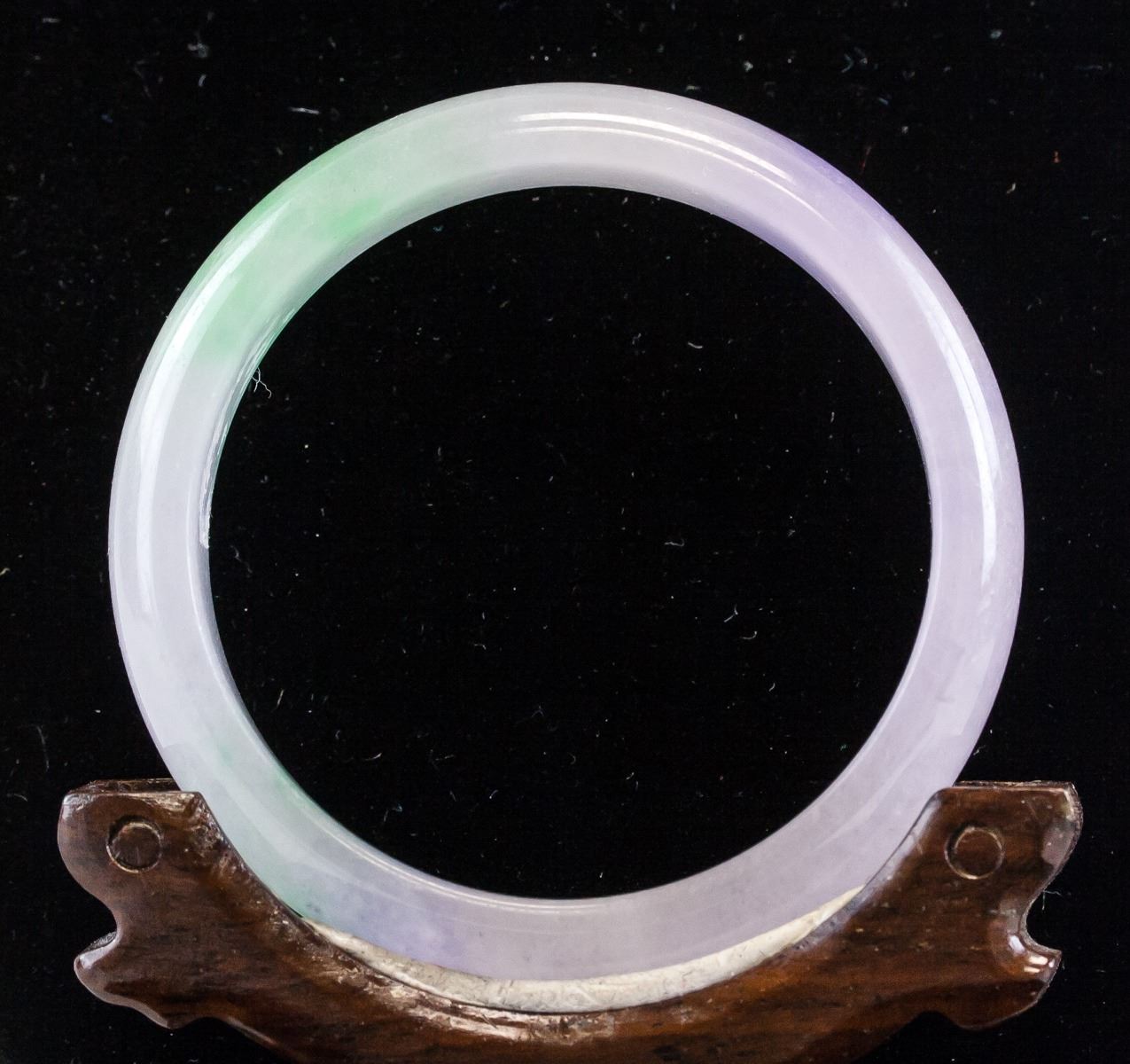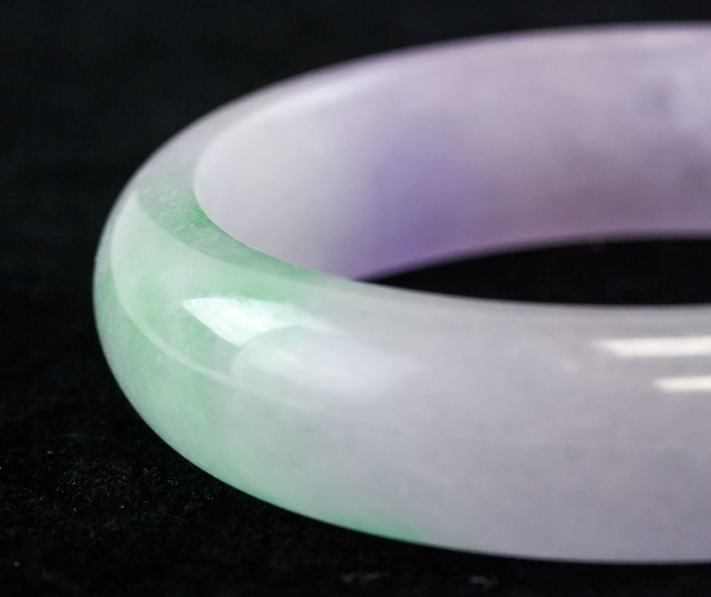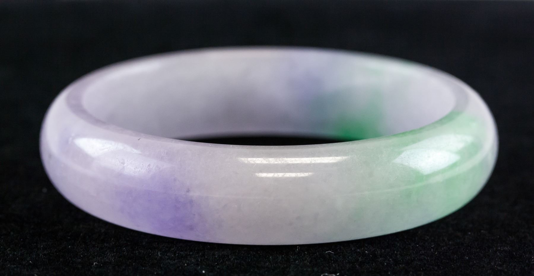 Burma two-color jadeite carved bangle. Of round outside and inside. Of mixed green and lavender tone. Density: 3.27, 57.93 grams