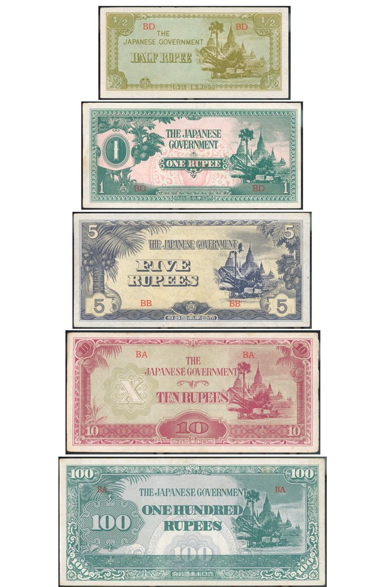 1/2, 1, 5, 10 and 100 Rupees. In display presrntation. Great for a re-seller. Mostly VF-aUNC