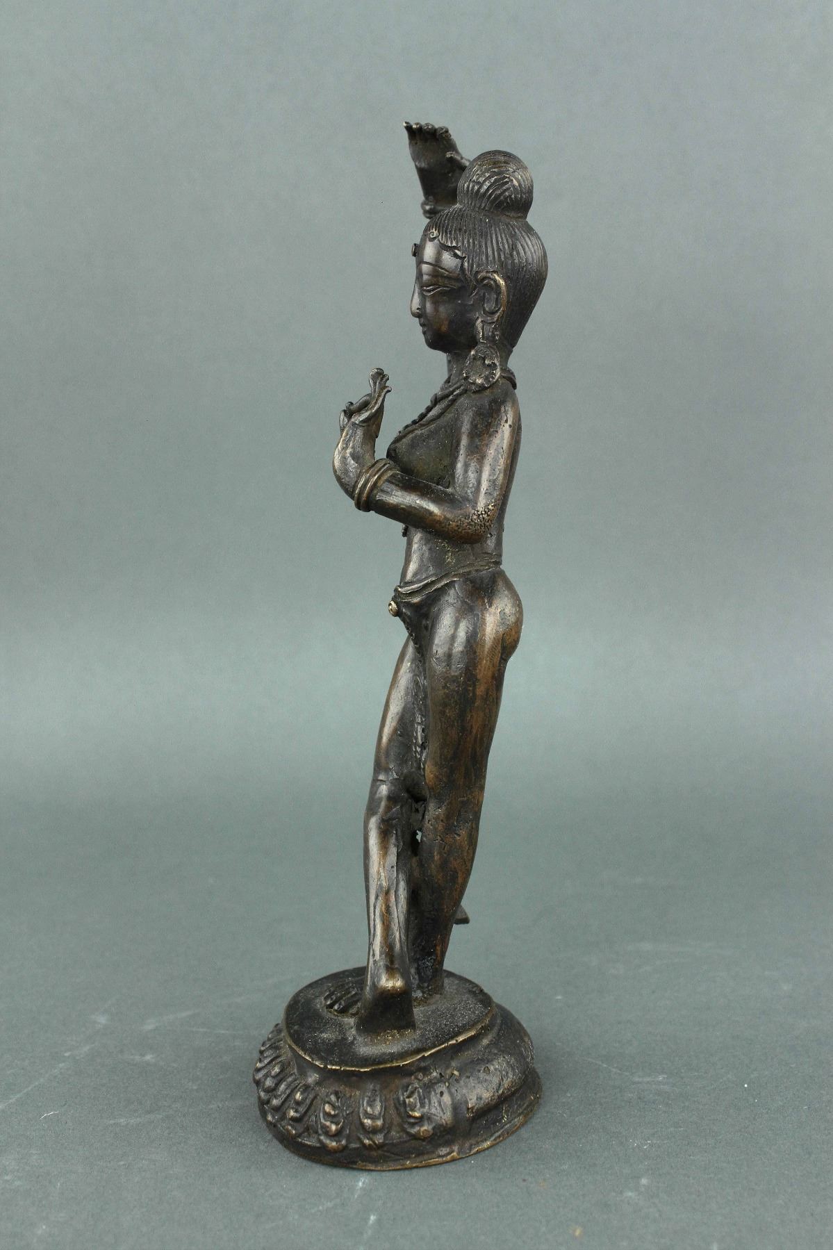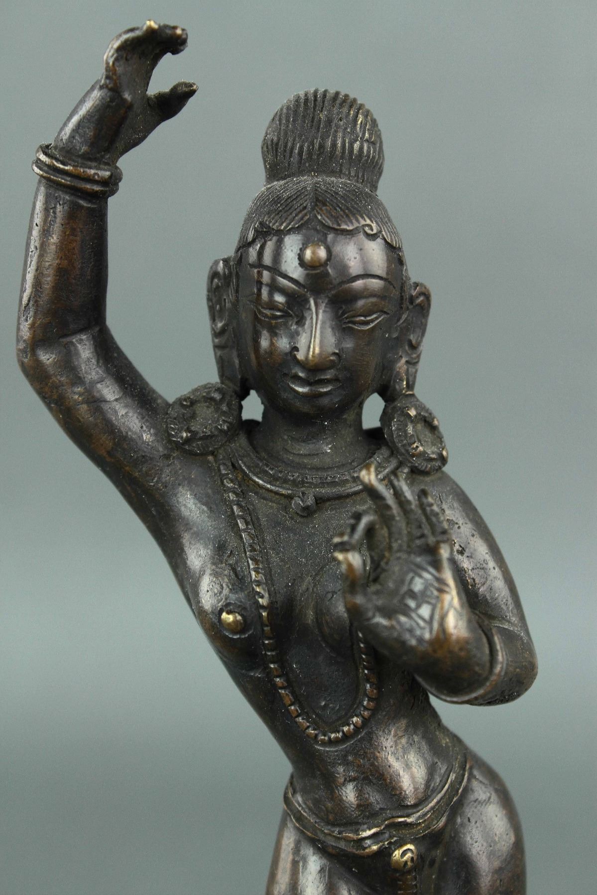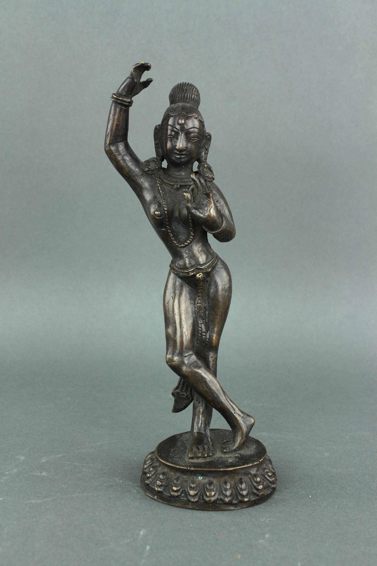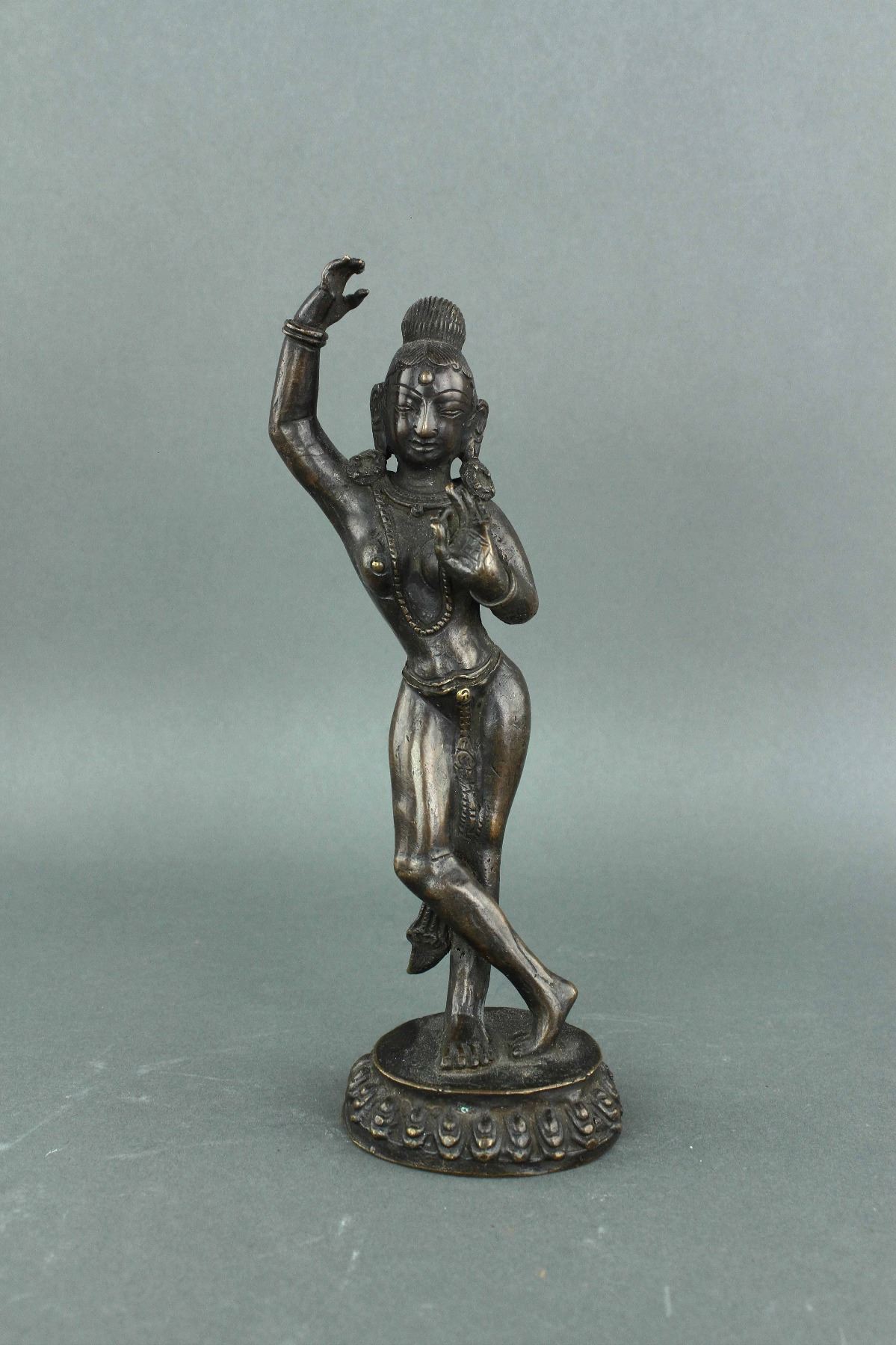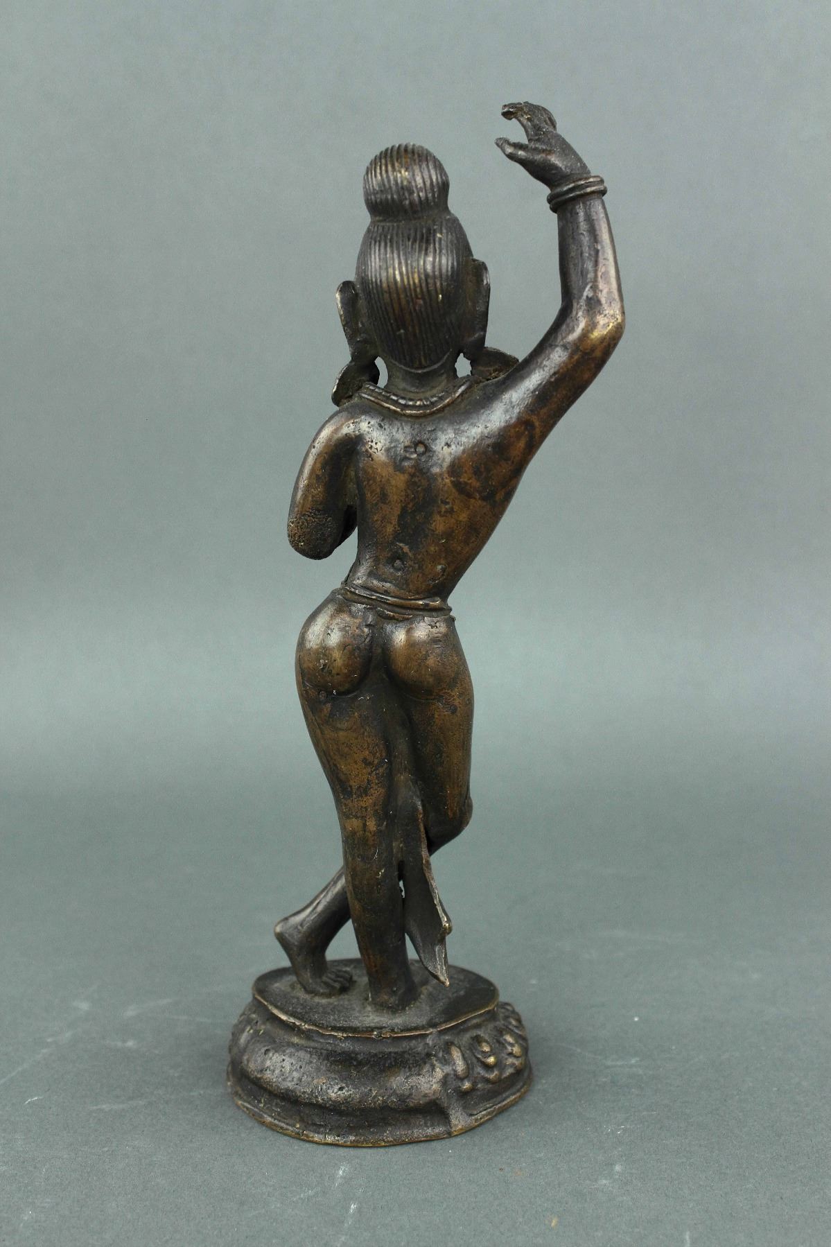 Burman or Indian bronze figure; 18th or 19th century; featuring a dancing Buddha on lotus plinth; H: 19 cm, D: 7 cm, 487 grams