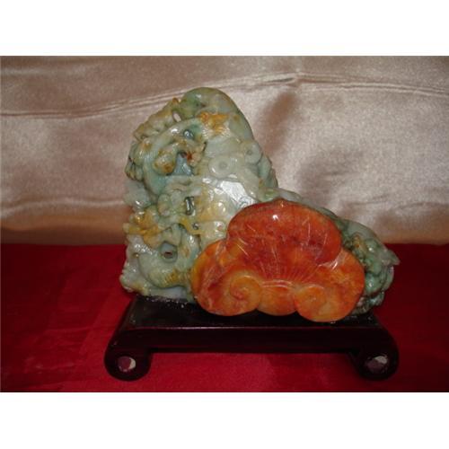 Description: Burmese Jadeite Boulder of 1900s - decorated with