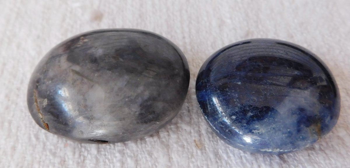Burmese Sapphires & Jade, unknown age. Lot contains 2 sapphires and one piece of jade. Jade item weighs approx 200 grams, the sapphires have an approx weight of 17 & 20 grams. From Burma. Cabochons ready to set! Frame not included. 5 grams per carat. Condition: Good, see images. Shipping: $20.00 w/insurance and signature.