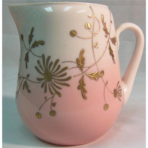 This listing features an old lovely painted Burmese Water Pitcher. A Burmese Water Pitcher is a rare piece. This one has a light peach color at the bottom that flows into a softer peach color. The Pattern is gold-painted flowers with vines and leaves. No damage except for minute crazing at the bottom. In excellent condition for a vintage piece.