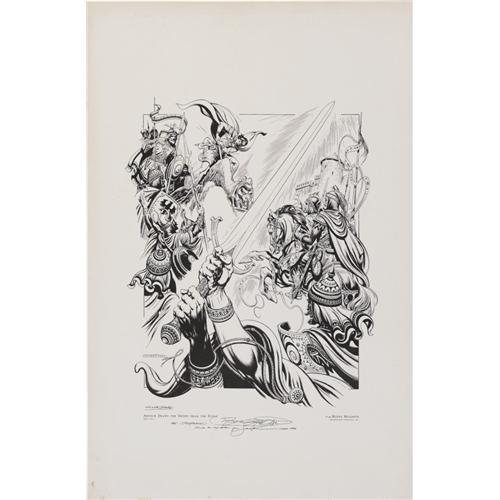 <B>Burne Hogarth - "Arthur Draws the Sword From the Stone" Print, Signed Artist's Proof (Blackthorne Publishing, 1986).</B></I> Burne Hogarth, perhaps most celebrated for his run on Edgar Rice Burroughs' <I>Tarzan </B></I>comic strip, created an awesome visual mythos for this print, based on the King Arthur saga. This artist's proof was signed and inscribed, "For Stephanie with all my love from Granpa, March, 1986." The print has an overall size of 23" x 35", and is in Excellent condition.<BR><BR><b>Shipping:</b> Flat Material, Large (<a target="_blank" href="http://www.heritageauctions.com/common/shipping.php">view shipping information</a>)
