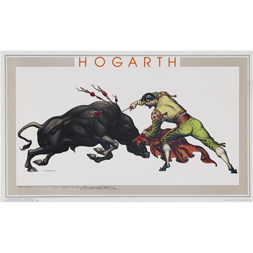 <B>Burne Hogarth - Signed "Hogarth" Bullfighter Print (Blackthorne Publishing, 1985).</B></I> Burne Hogarth, the master of dynamic anatomy, captures the drama and pageantry of the sport of bullfighting. This colorful print was signed and inscribed, "To Stephanie, with love and all fond thoughts, grandpa, Burne Hogarth,1985." The print has an overall size of 27" x 16.5", and is in Very Good condition.<BR><BR><b>Shipping:</b> Flat Material, Large (<a target="_blank" href="http://www.heritageauctions.com/common/shipping.php">view shipping information</a>)