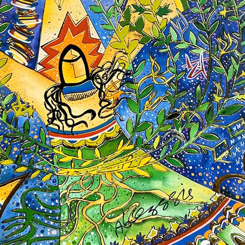 Burning Bush by Abecassis, Raphael. "Burning Bush" is a limited edition serigraph with gold foil on paper by Rafael Abecassis. The piece comes hand signed by the artist, numbered, and with a letter of authenticity. Measures approximately 13" x 9".