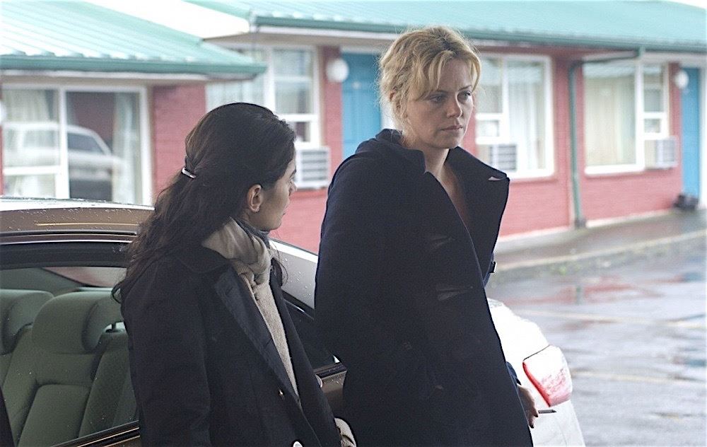 (Magnolia Pictures, 2009) This coat was acquired by the production for use by Charlize Theron as "Sylvia". The navy blue fleece coat is made by Max & Co. and features an attachable hood. Included with the coat are two production used costume tags that detail her entire costume, change and scene numbers used.