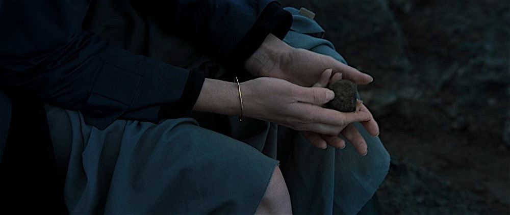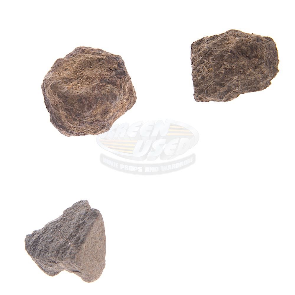 (Magnolia Pictures, 2009) This set of three rocks were acquired by the production for use by Charlize Theron as "Sylvia". The rocks are natural stones with soft edges. Wear from use is present. Pieces measure 1.75" x 1.5" x 1.0", 1.75" x 1.5" x 0.75" and 1.5" x 1.5" x 0.5".