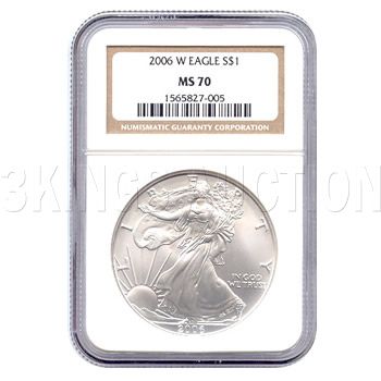 Burnished 2006-W Silver Eagle MS70 NGC **|**|** Burnished 2006-W Silver Eagle MS70 NGC ; MSRP: $1000