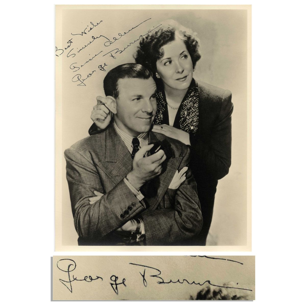 George Burns and Gracie Allen Signed 8'' x 10'' Photo -- ''Best Wishes Sincerely Gracie Allen George Burns'', Near Fine