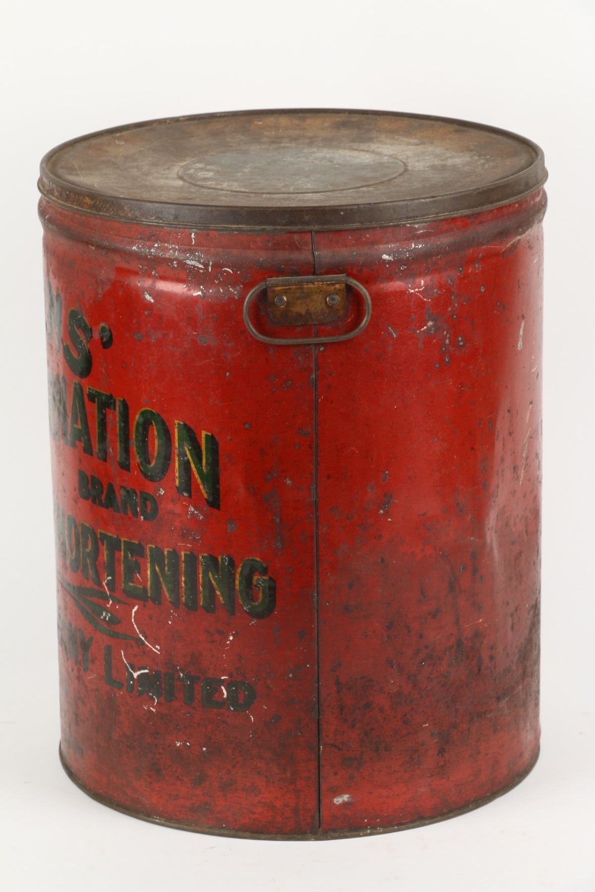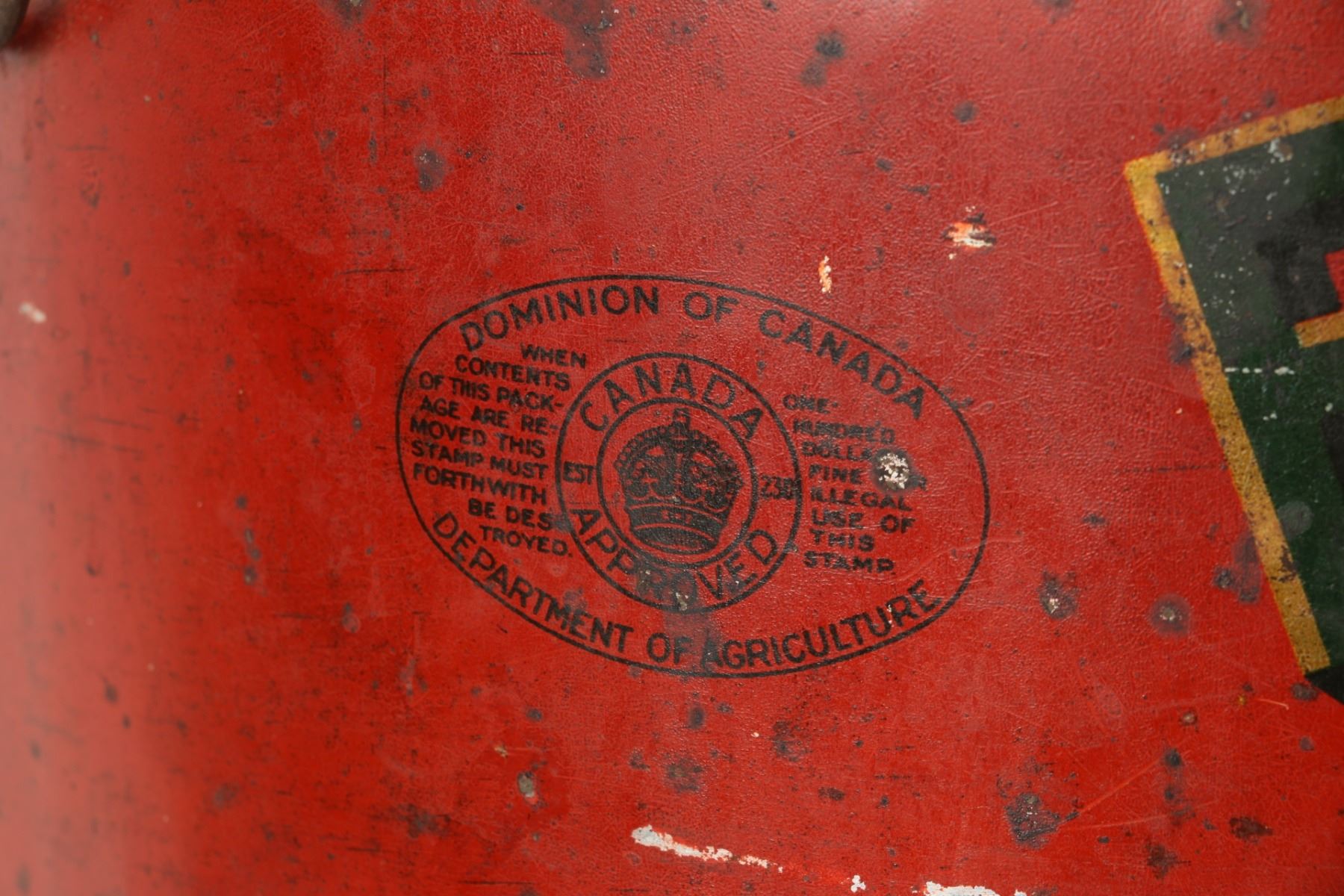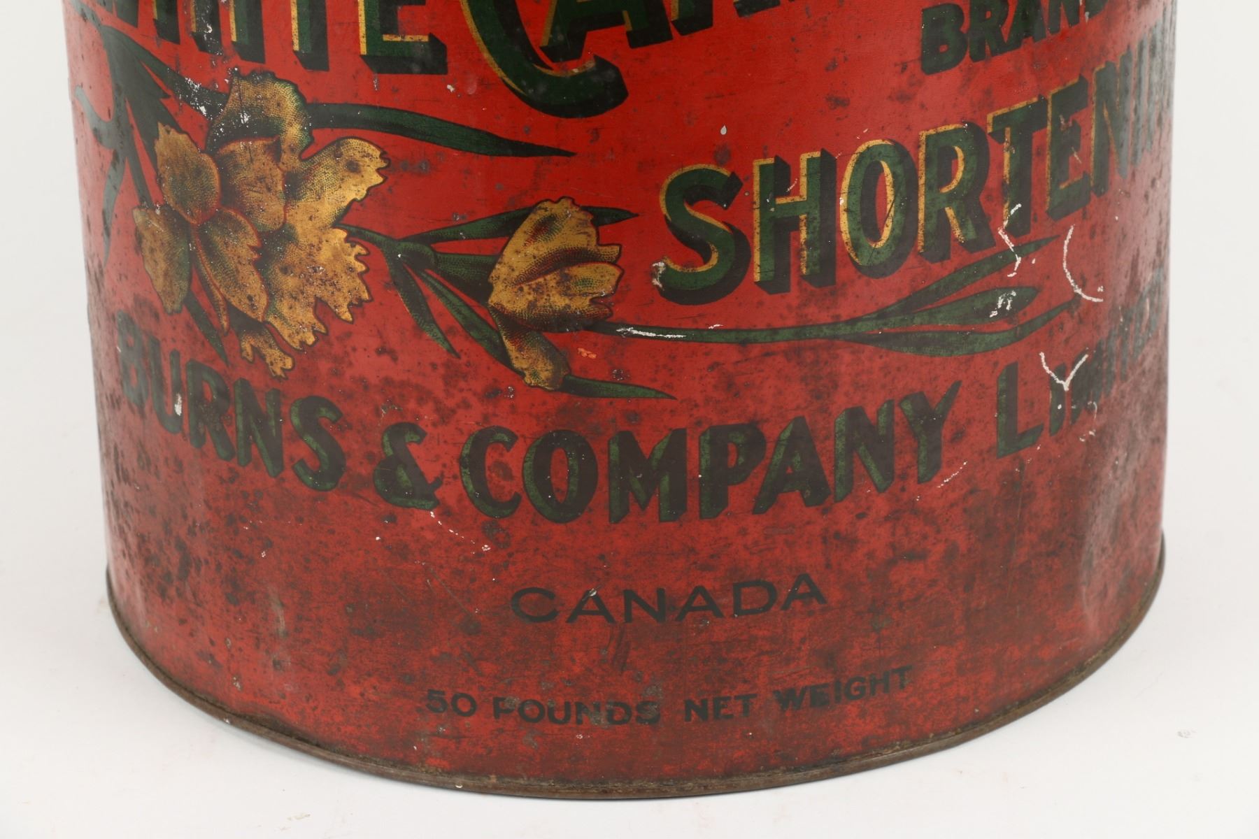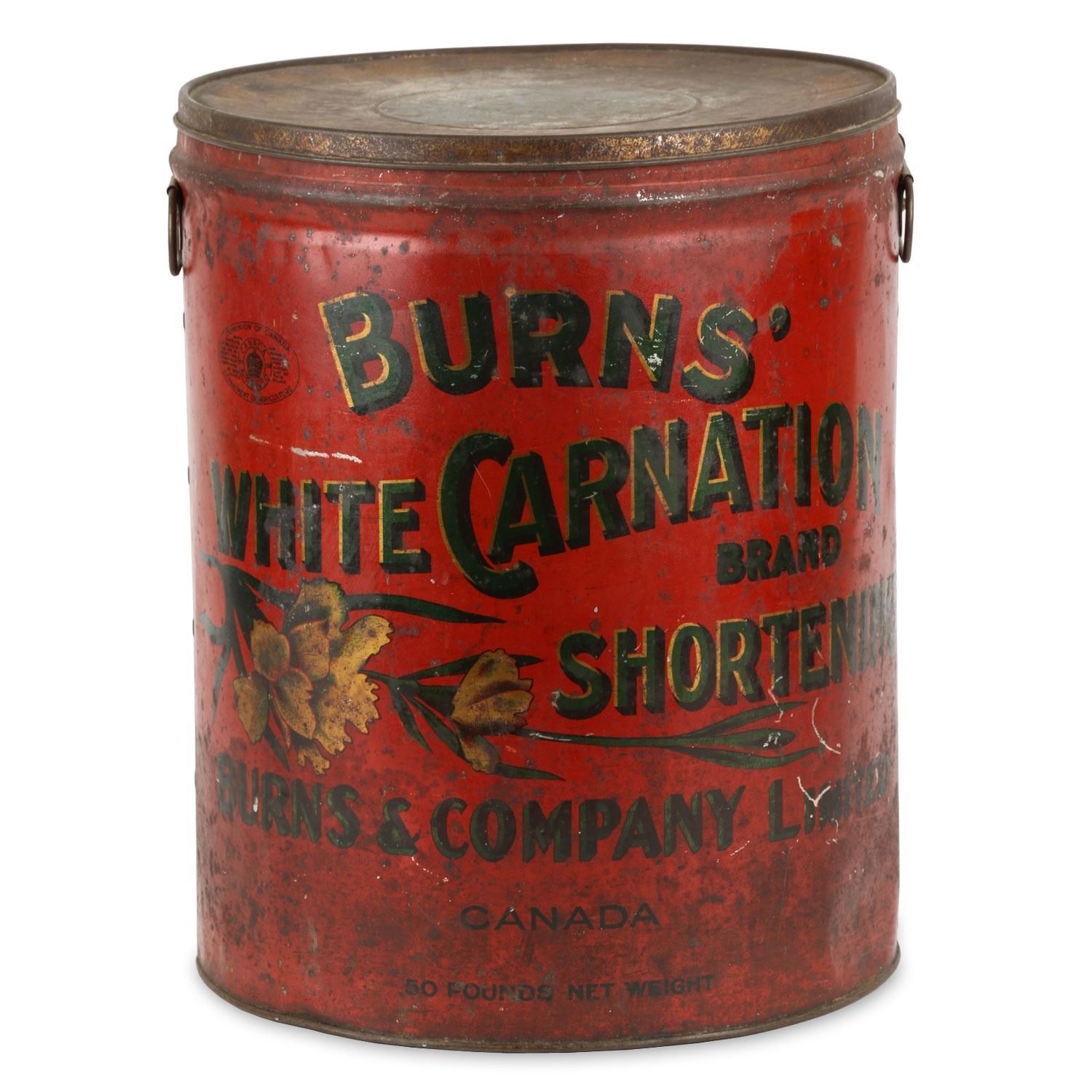 Canadian. Circa 1920. 50lbs. Original lid. 15.5” x 12”. Heavy oxidation and staining. Scattered dents and scratches. $50-75.