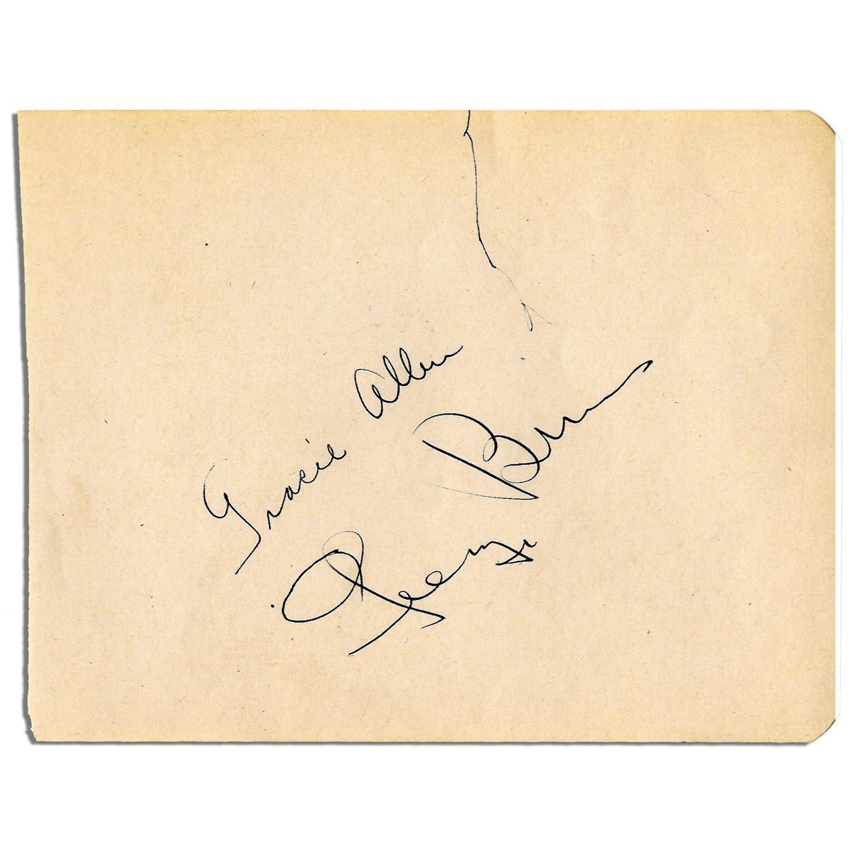George Burns and Gracie Allen Signatures -- Clear Signatures From Infamous Comedy Couple -- 5.5'' x 4.5'' -- Near Fine