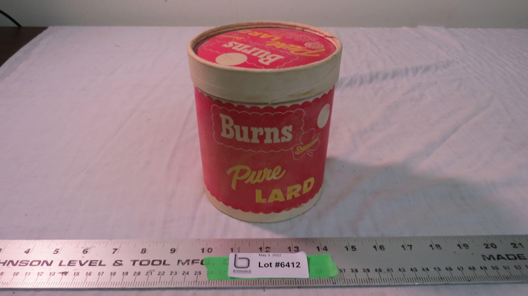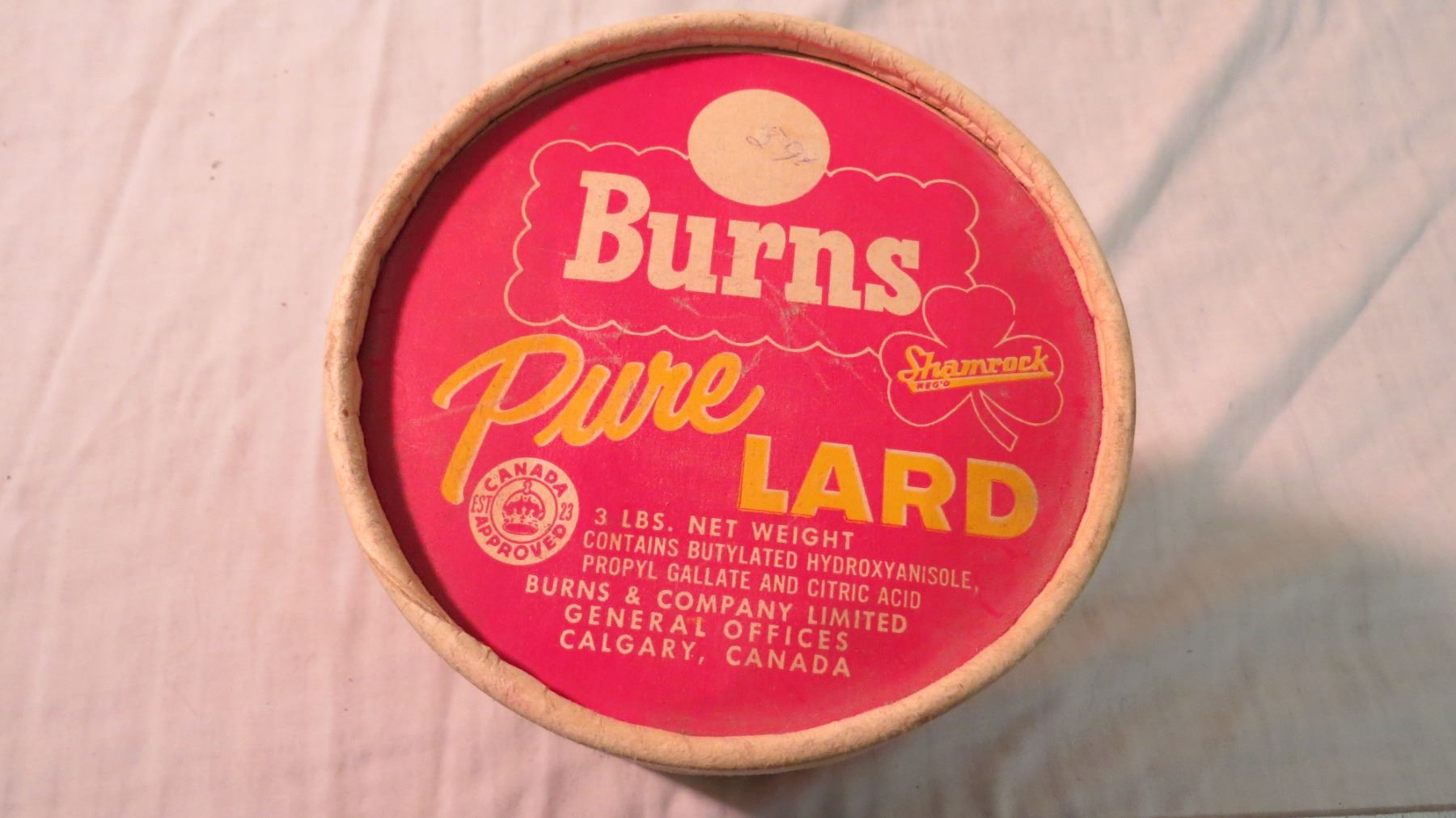 Burns pure lard cardboard container