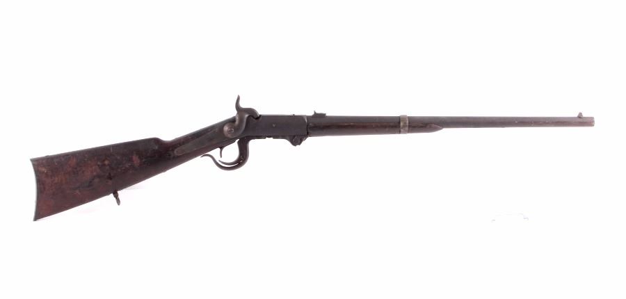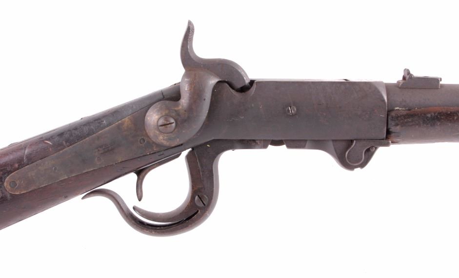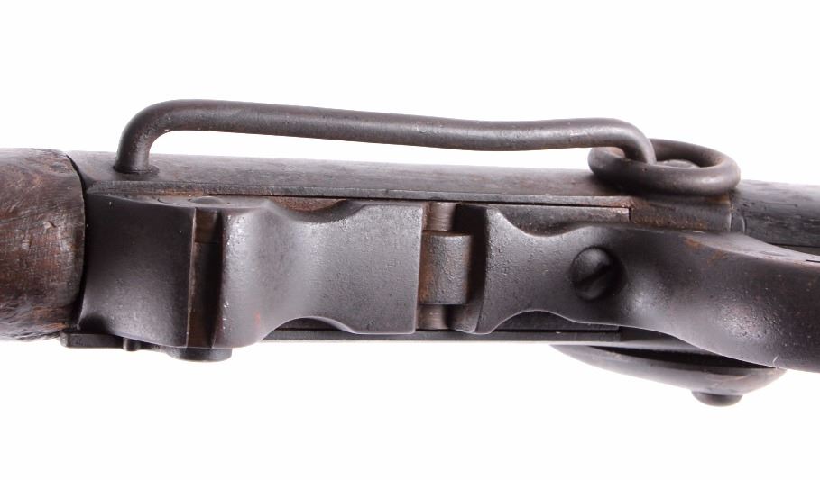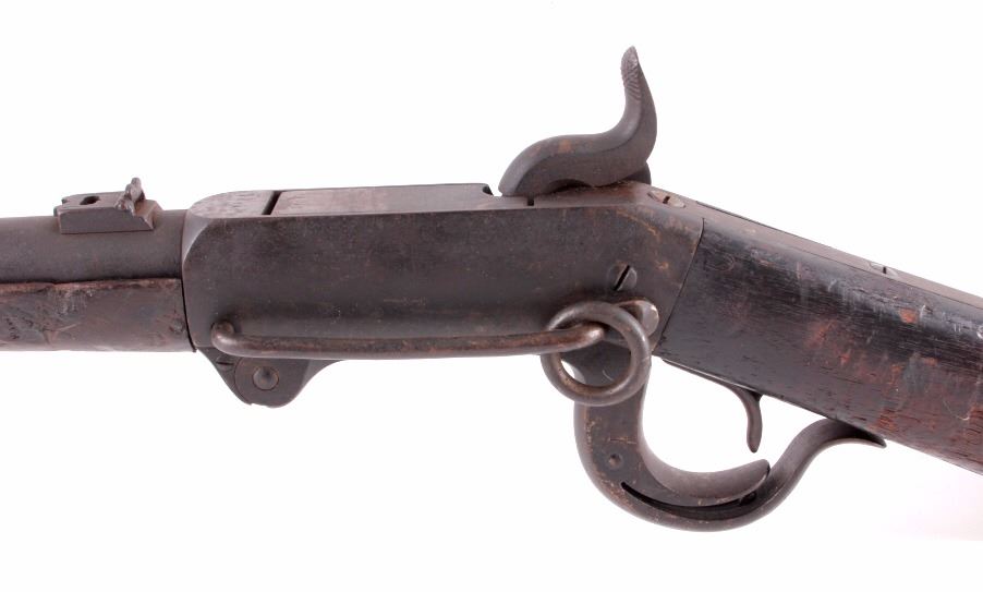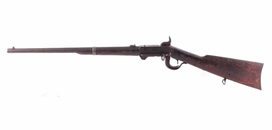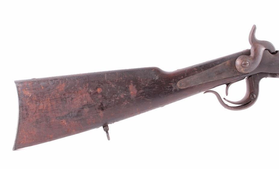 This is a Burnside 4th Model Civil War breech loading rifle chambered in .54 caliber and manufactured in 1863-1864. The Burnside rifle was the third most popular rifle in the Civil war with over 50,000 used by Union troops. Only the Spencer and Sharps carbines saw more use during the war. This carbine features a round steel barrel with solid walnut hardwood stocks. The lock plate is marked "Burnside Rifle Co. Providence, R.I.". The barrel is marked "Cast Steel 1862". Lastly, the top of the frame is marked "Burnside Patent March 25, 1856". The top of the breech shows the serial number "39081". Production of the 4th Model is estimated at 7000. The Burnside carbine is in good overall condition with moderate wear. The carbine measures 39.25" with a 21" barrel. This is an antique firearm manufactured before 1898. NO FFL required.