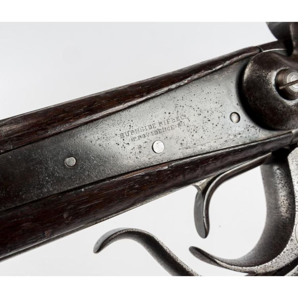 SERIAL NUMBER: 15518 DESIGN: Single shot percussion carbine. 21" barrel. Manufactured by Burnside Rifle, Providence, RI. CONDITION: Fair. Pitting to metal components. Stock with scratches and patina.