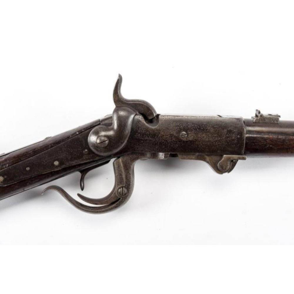 SERIAL NUMBER: 15518 DESIGN: Single shot percussion carbine. 21" barrel. Manufactured by Burnside Rifle, Providence, RI. CONDITION: Fair. Pitting to metal components. Stock with scratches and patina.