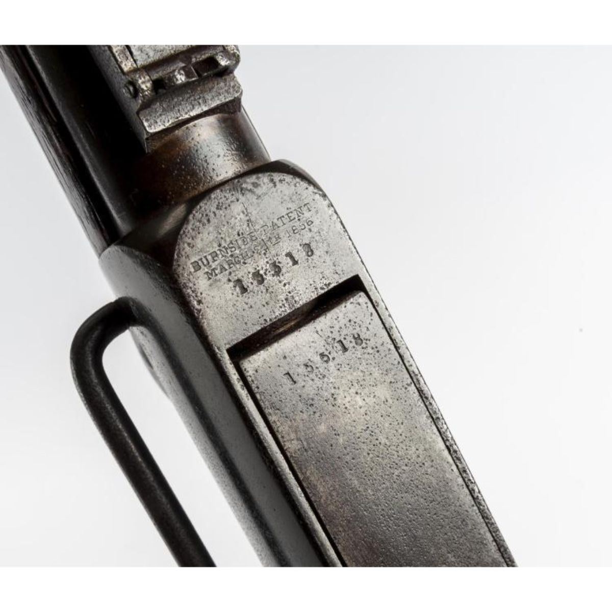 SERIAL NUMBER: 15518 DESIGN: Single shot percussion carbine. 21" barrel. Manufactured by Burnside Rifle, Providence, RI. CONDITION: Fair. Pitting to metal components. Stock with scratches and patina.