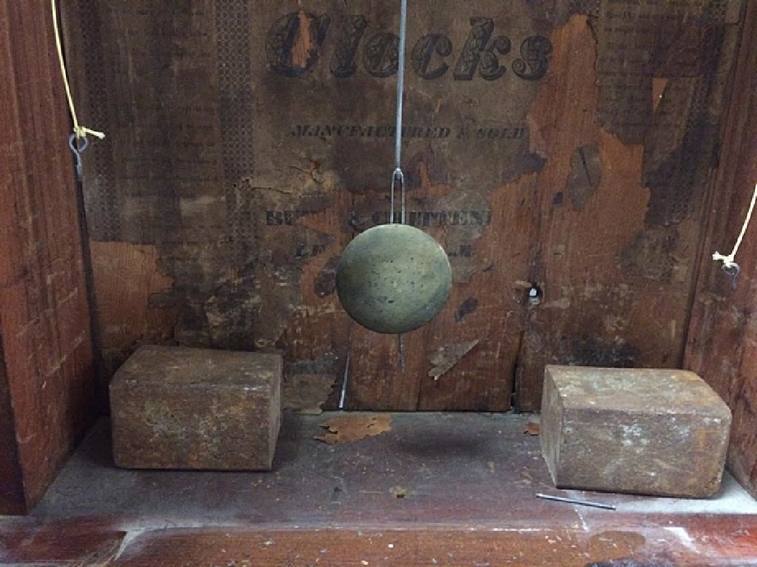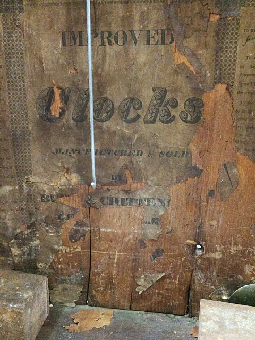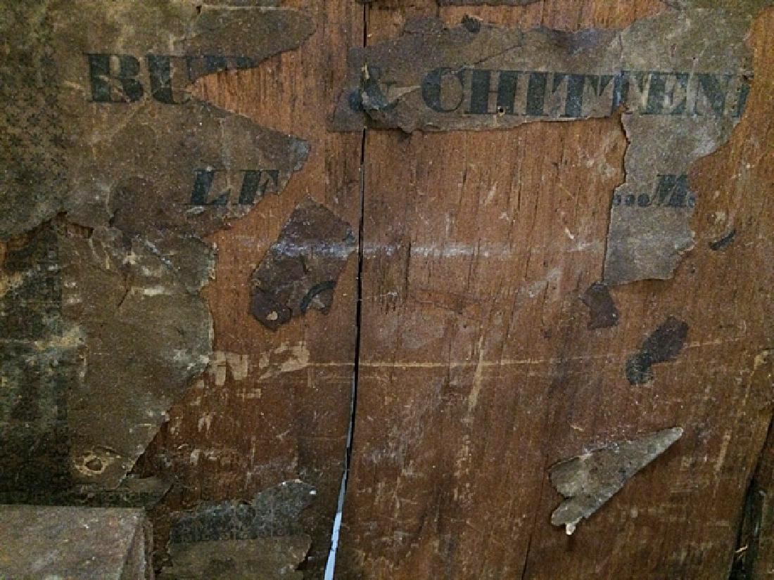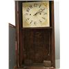 Burr & Chittenden Mahogany Looking Glass Shelf Clock, Lexington, Mass, with very uncommon groaner movement. Wooden works, stenciling at top and columns, full mirrored door, has nice beehive stenciling at top and bottom of columns, nice original weights and pendulum, keys, original dial with American sheild painted in all for corners in gold gilt, open diamond hands, striking bell at top of case.