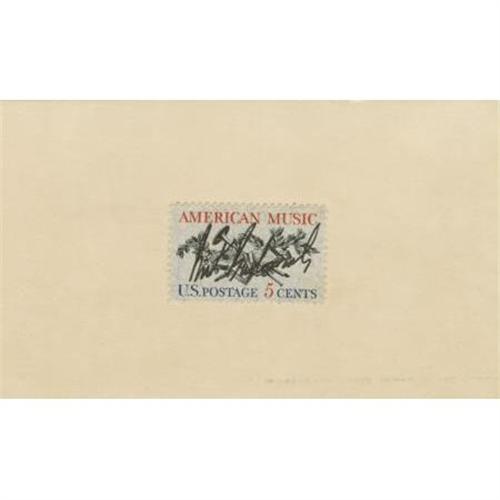 <B>Burt Bacharach Autograph.</B></I> A 3" x 5" card, with a five-cent commemorative postage stamp affixed, signed by the Academy Award-winning composer/pianist in black ink. Bacharach's autograph spans the face of the stamp. In Excellent condition.<BR><BR><b>Shipping:</b> Flat Material, Small (<a target="_blank" href="http://www.heritageauctions.com/common/shipping.php">view shipping information</a>)