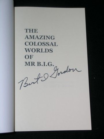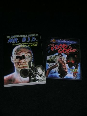 This is a great classic Sci-Fi lot from the legendary director Burt I. Gordon including a signed autobiography "The Amazing Colossal World of Mr. B.I.G" as well as a signed DVD of his H.G. Wells adaptation of "The Food of the Gods."