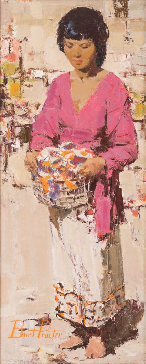Burt Procter (1901-1980). Native Girl. 33" x 13" oil on board. Signed lower left.