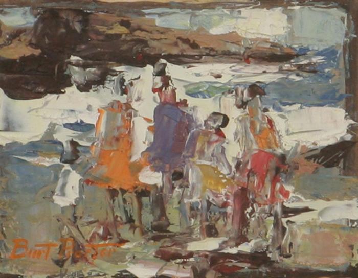 Burt Procter (1901-1980). Study of Group of People at Beach. 4 1/2" x 5 3/4" oil. signed lower left. Condition Report: Black lights clean.