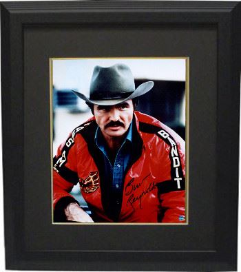 Burt Reynolds has memorable roles including Lewis Medlock in Deliverance, Bobby "Gator" McCluskey in White Lightning, Paul "Wrecking" Crewe in The Longest Yard, Coach Nate Scarborough in the 2005 remake of The Longest Yard, and Bo 'Bandit' Darville in Smokey. He is one of America's most recognizable film and television personalities with more than 90 feature film and 300 television episode credits. This is Burt Reynolds hand autographed Smokey and the Bandit 11x14 Photo. Steiner Sports Hologram and Certificate of Authenticity. Custom Black Mat and Premium Black Frame as shown.