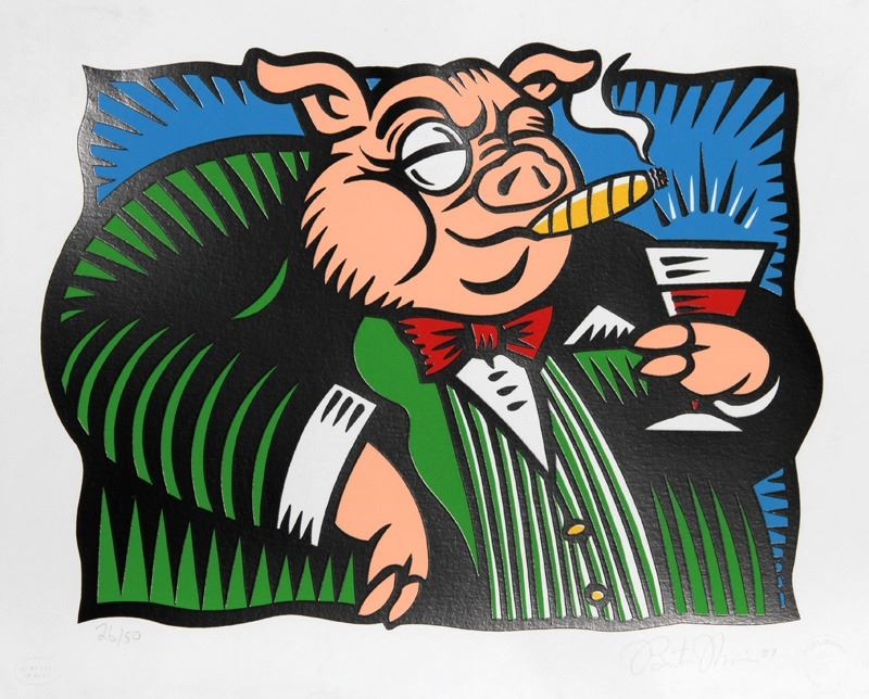 Burton Morris, Pig from Heard on the Street Suite, Serigraph