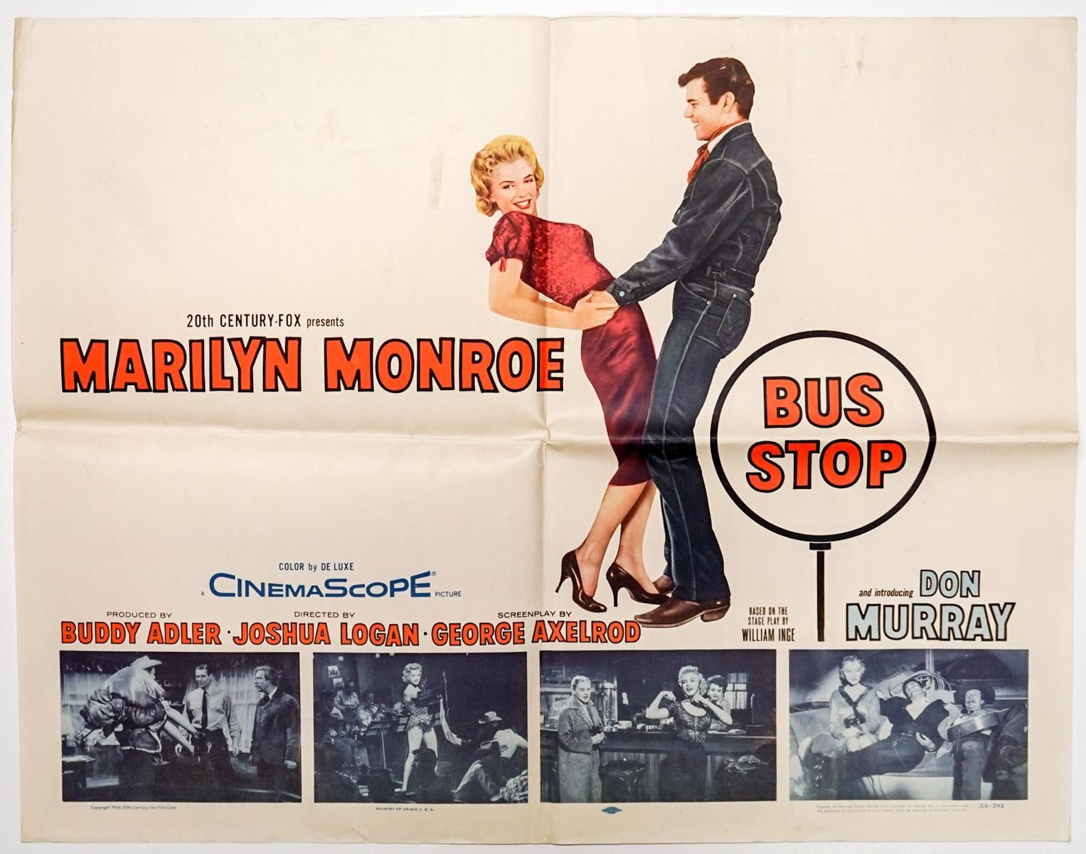 Bus Stop 1956 half sheet movie poster. Measures 21.5 in. x 27 in. and folds to 11 in. x 14 inches.