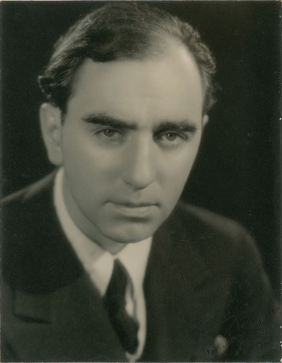 Director and choreographer (1895–1976) whose lavish, elaborate dance numbers defined the look of movie musicals in the 1930s and 1940s. Vintage matte-finish 10.5 x 13.5 portrait of Berkeley wearing a suit and tie, signed and inscribed to boxing legend Jack Dempsey in fountain pen, "To Jack, A great fighter—and a great guy—(who accidentally married a great girl), Sincerely—Busby Berkeley, 'Warner Bros. Pictures.'” Affixed to a same-size mount. In fine condition, with poor contrast to all of the handwriting against Berkeley's dark suit. Photo was originally displayed at Jack Dempsey's Broadway Restaurant.
