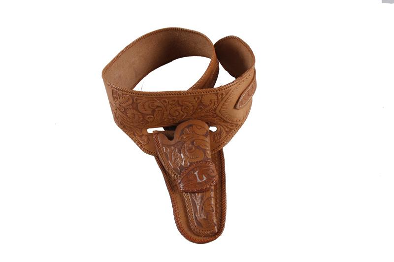 Buscadero 1950s Holster Rig Hollywood style for a S&W model 10 or a Colt Official Police, with the "L" monogram on holster, in light tan leather.Hollywood style for a S&W model 10 or a Colt Official Police, with the "L" monogram on holster, in light tan leather.