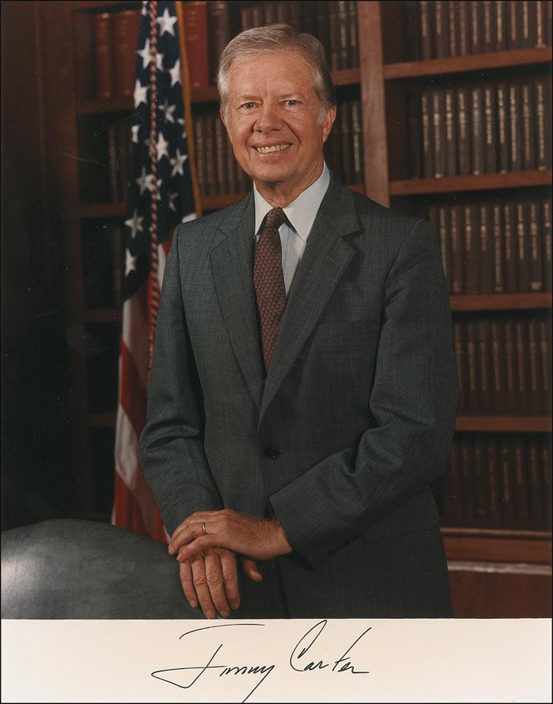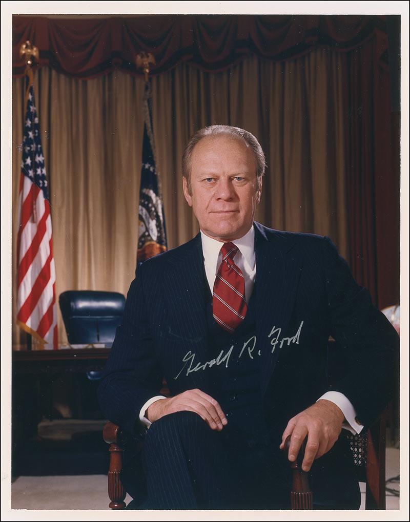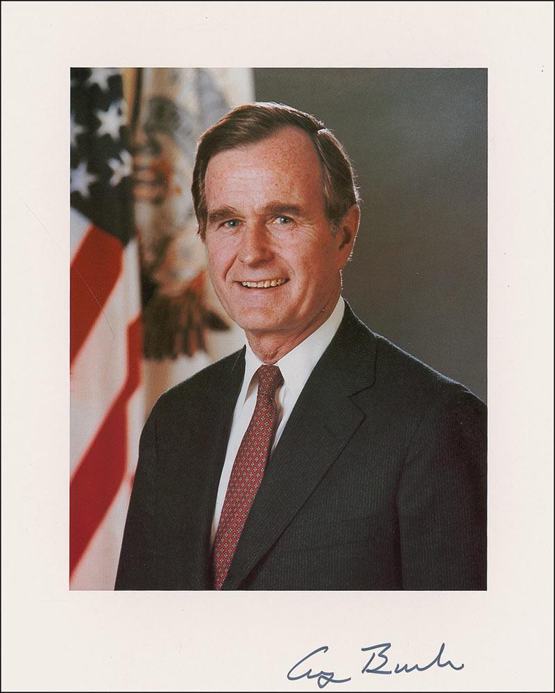 Three items: Color satin-finish 8 x 10 photo of Gerald R. Ford, signed in silver felt tip; color satin-finish 8 x 10 photo of Jimmy Carter, signed in black felt tip; and a color cardstock 8 x 10 photo of George Bush, signed in black felt tip. In fine condition. Pre-certified PSA/DNA and RRAuction COA.