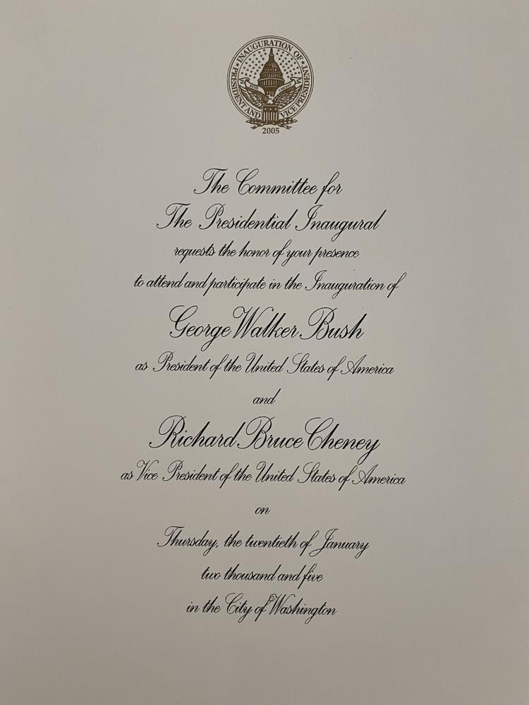 President George Bush, VP Dick Cheney January 20, 2005 inauguration invitation. 8.5x11 inches