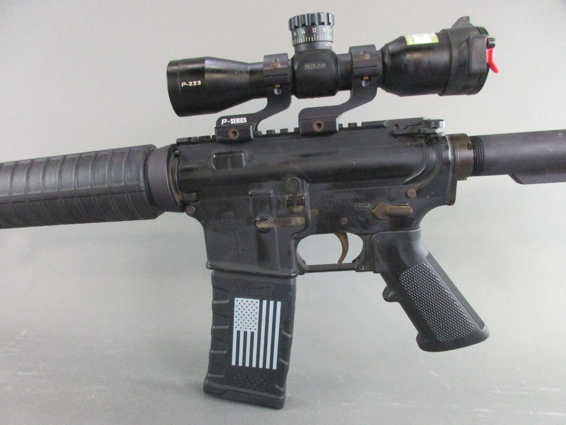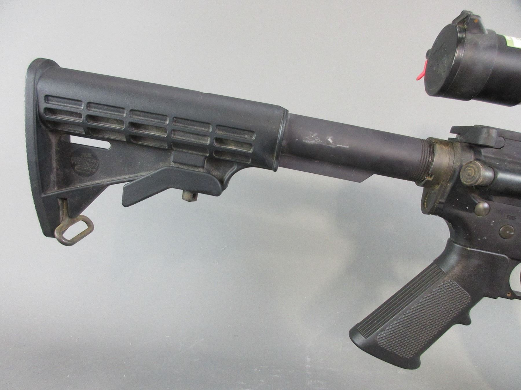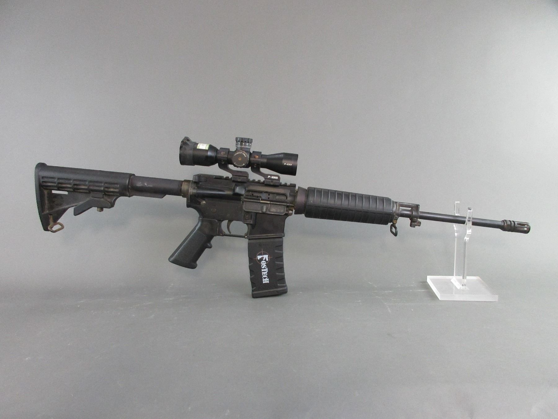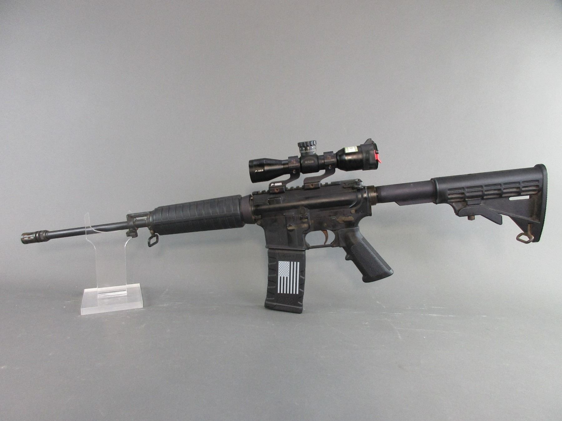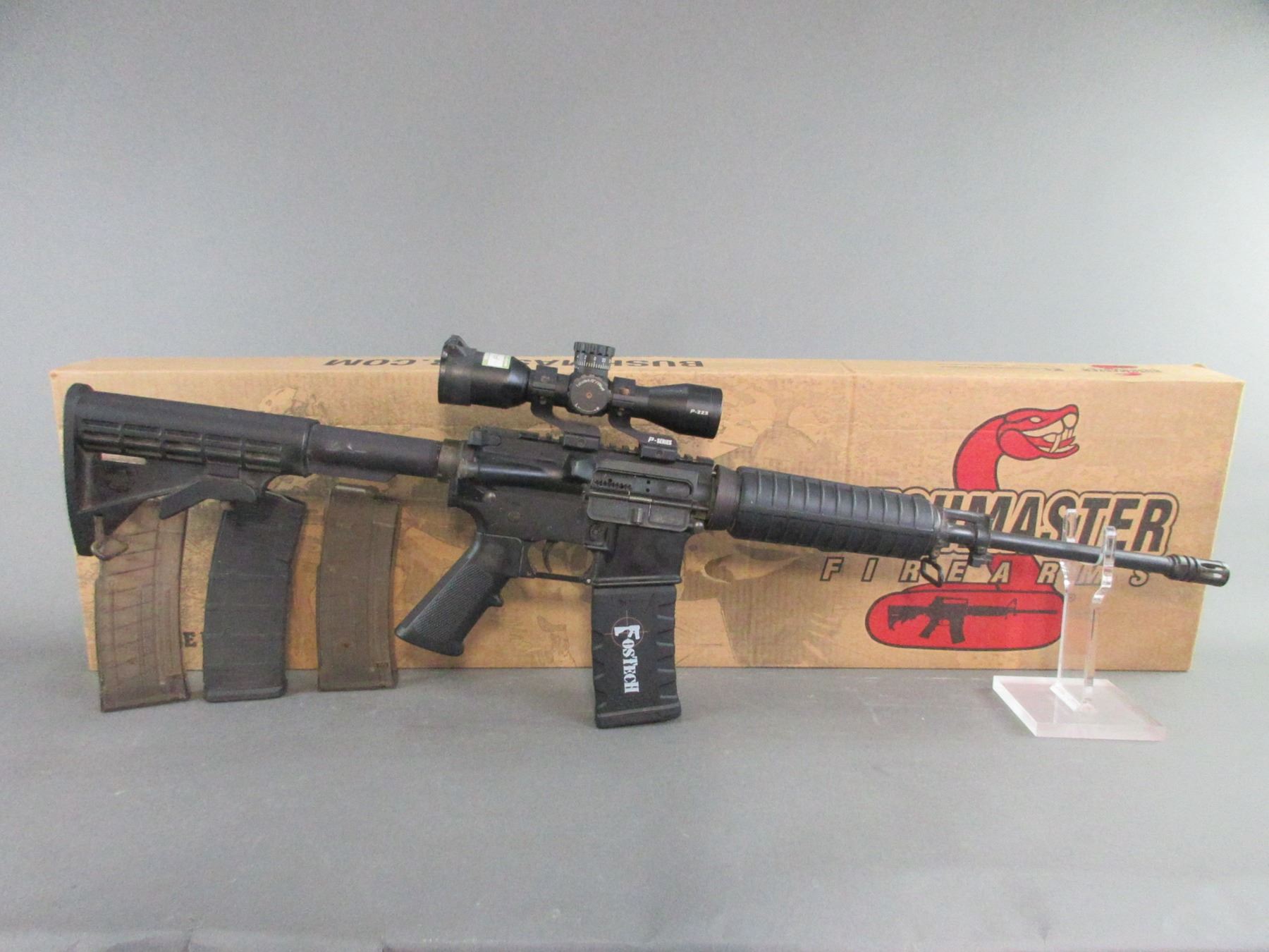 Bushmaster Model XM15 Semi-Automatic Carbine- .223- 5.56- 18" Barrel With Flash Suppressor- Bushnell P-223 Scope- Adjustable Stock- 4 Mags- Box- #BK5027998