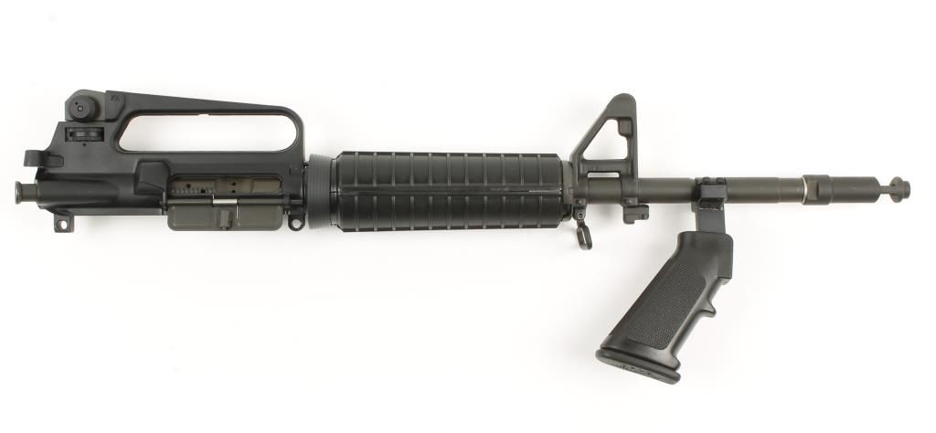 Complete upper including A2 front sight, carry handle with aperture rear sight, 16" barrel and forward pistol grip handle.