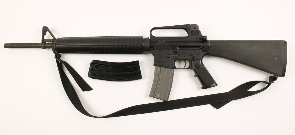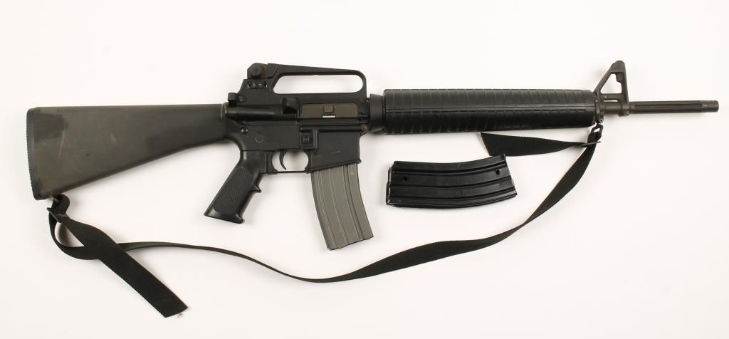 Semiautomatic military style carbine. Target model with fluted 20" HBAR. Very good bore. Adjustable sights. Forward assist and case deflector. Comes with two 20-round magazines. A-2 style rigid stock and forend. All finish is very good. Condition is very good plus. This firearm has never been fired! *Modern Firearm*