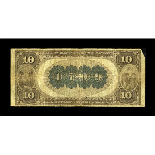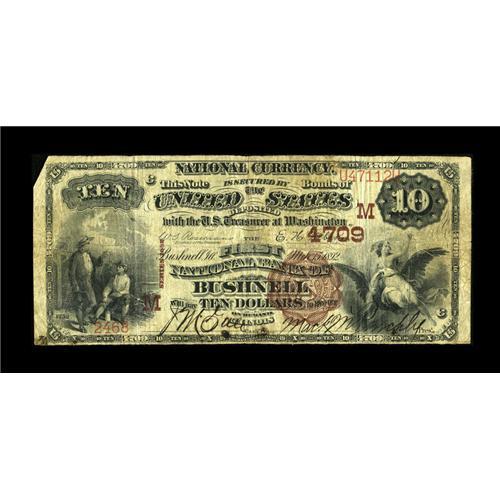 <B>Bushnell, IL</B></I> - $10 1882 Brown Back Fr. 485 <B>The First NB</B></I> Ch. # (M)4709<BR>The corner has been clipped on this otherwise pleasing note from this McDonough County issuer which served the community for 40 years.<B>Very Good-Fine.</B></I><BR><I>From The Lincoln Collection</B></I><BR><BR><b>Shipping:</b> Coins & Currency (<a target="_blank" href="http://www.heritageauctions.com/common/shipping.php">view shipping information</a>)