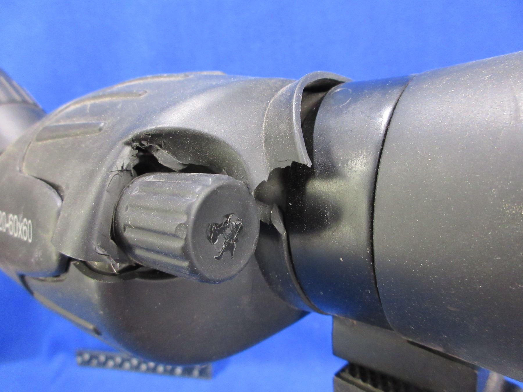 Bushnell Spotter 20-60x60 Spotting Scope with Tripod - Appears Clear - Rubber grip on scope has damage