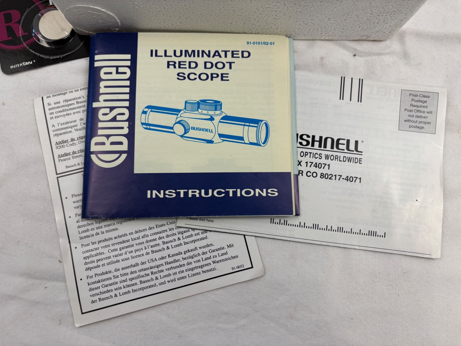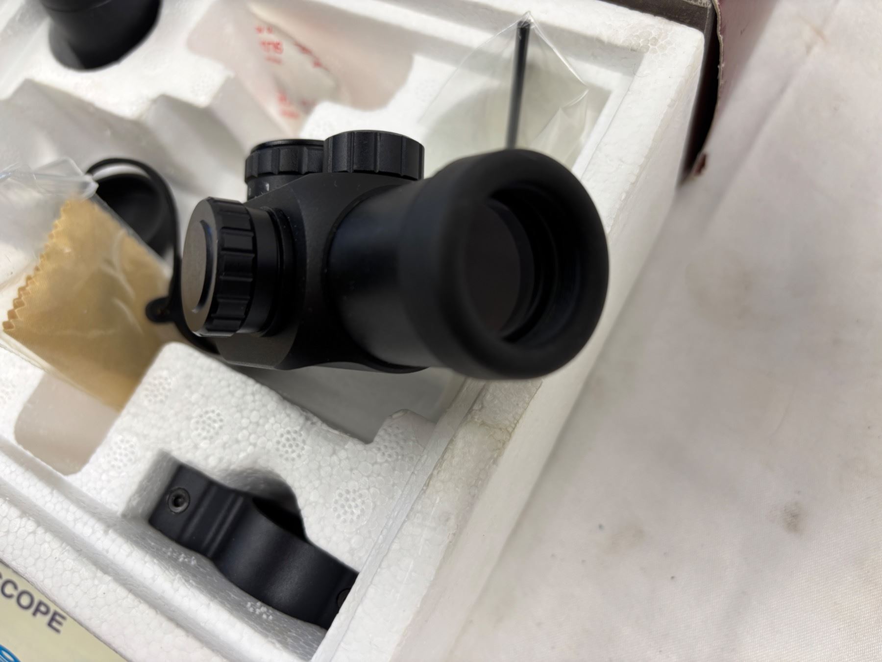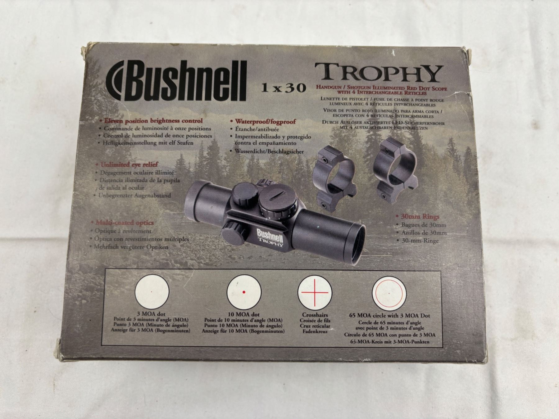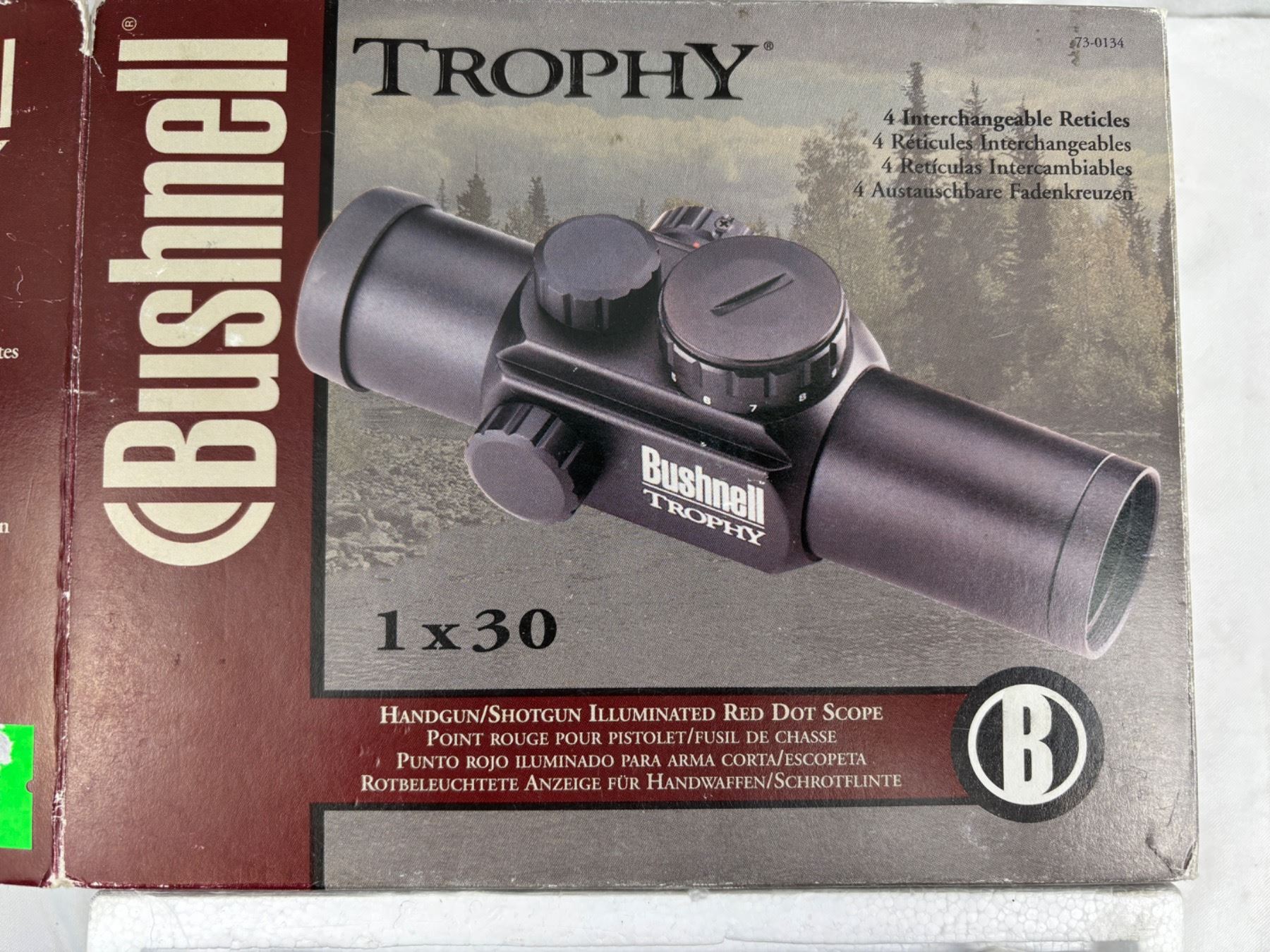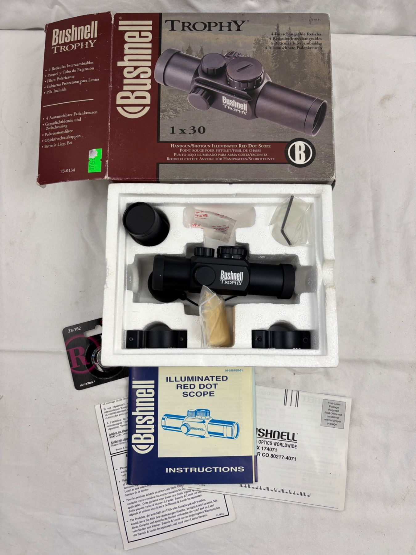 Illuminated Red Dot Scope, open box, Model No. 73-0134, Has interchangeable reticles
