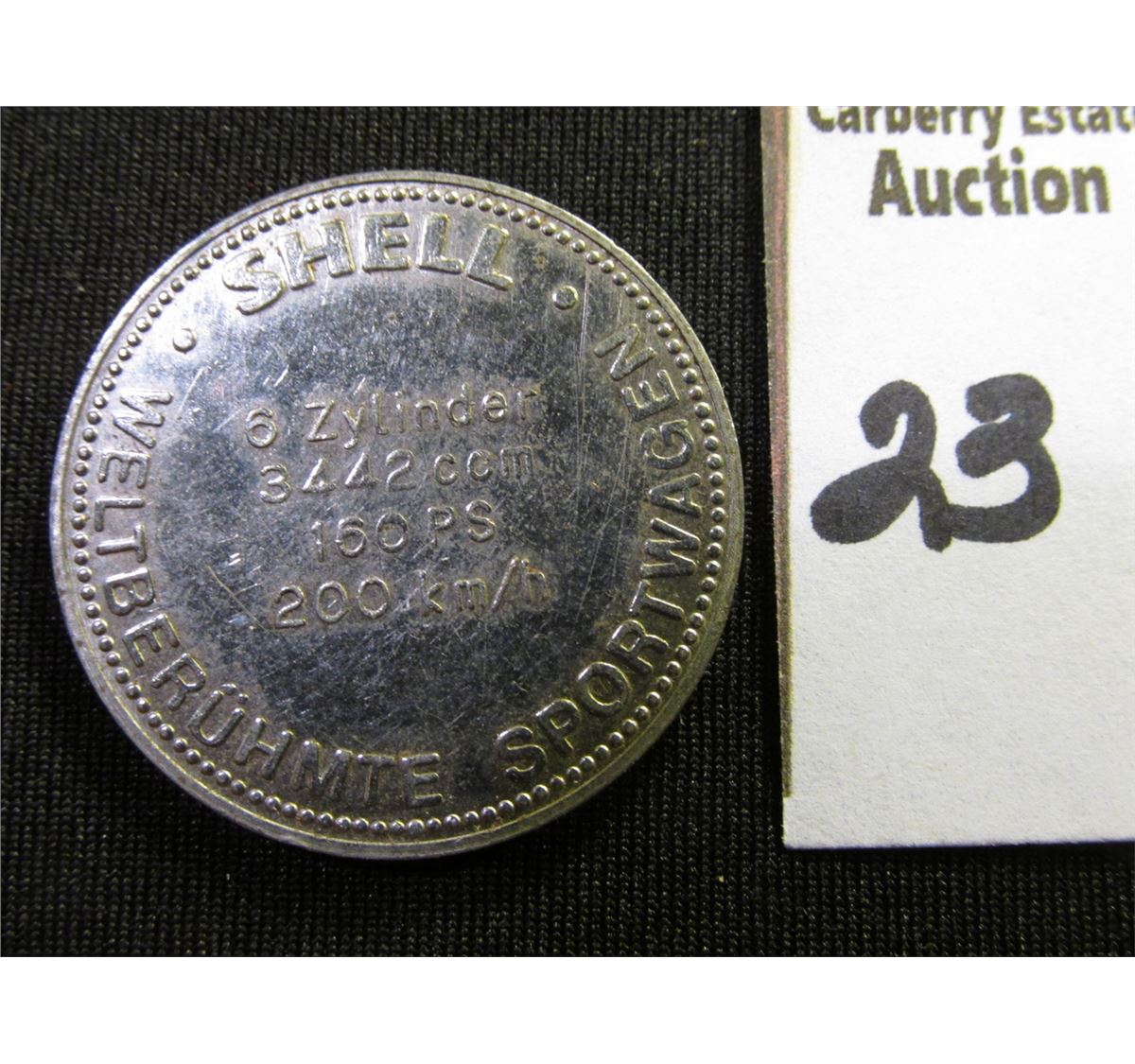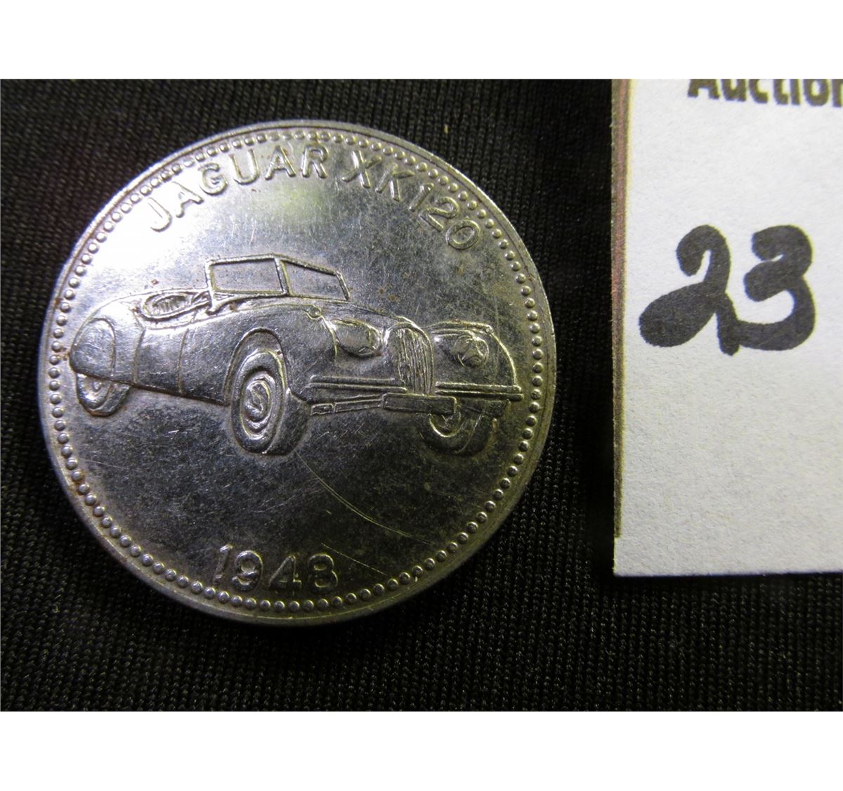 Business Reply Card solicitng business for Coldbrook Motors, Inc. in Chambersburg, Pa.; 1979 Mercury Color Section Brochure; "Stamp of Greatness Mercedes-Benz" Brochure; & "Jaguar XK120 1948" Medal "Shell…" reverse in German.