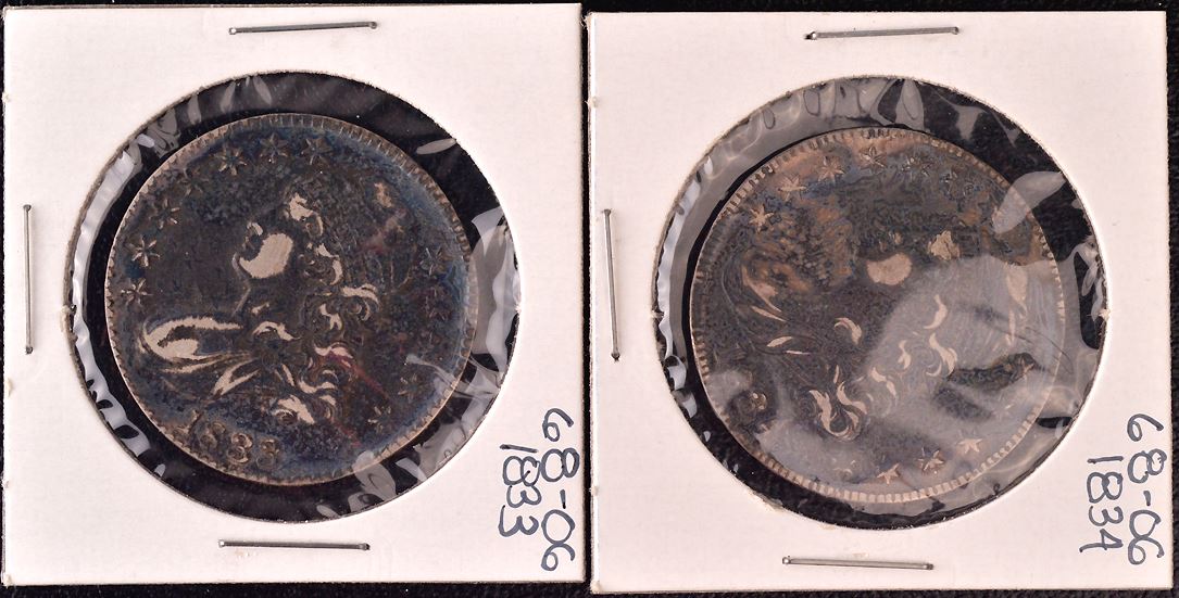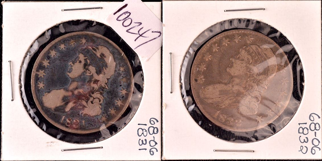 United States, Bust Half Dollars, 1831; 1832; 1833; 1834; First two VG-F; last two VF-EF, but darker obverse toning; Total of 4 pcs.