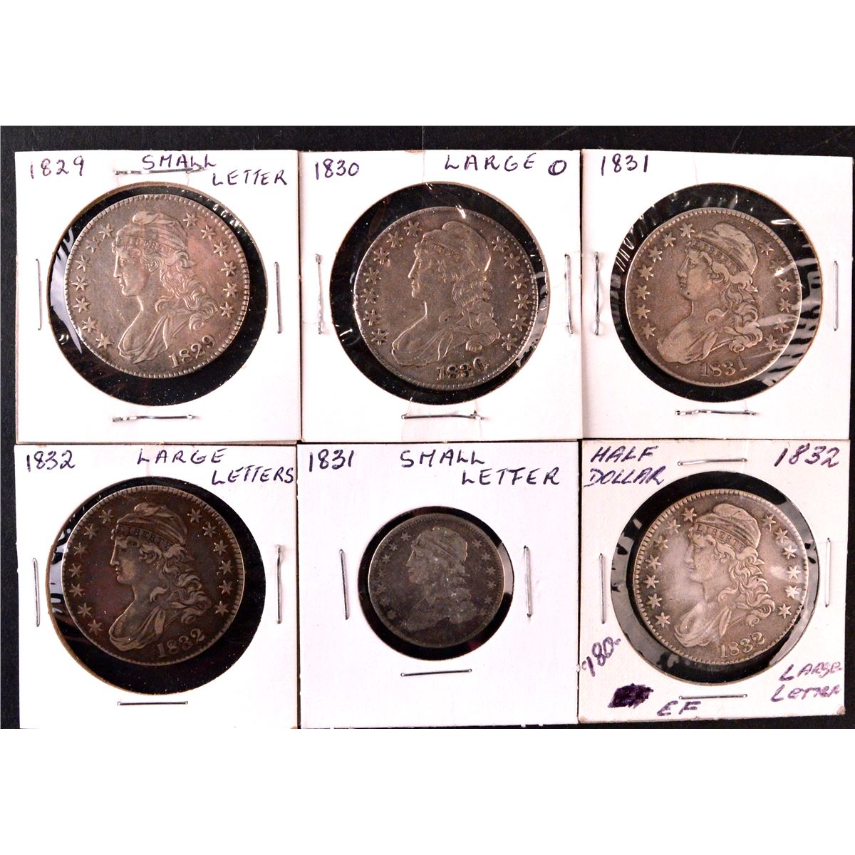 United States, Bust Quarter, 1831; Half Dollars, 1829; 1830; 1831; 1832, (2); First Fine, rest average VF. Total of 6 coins.