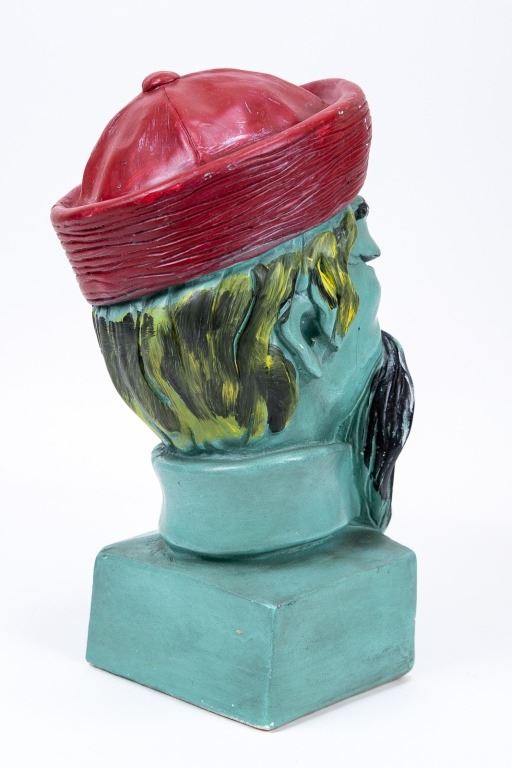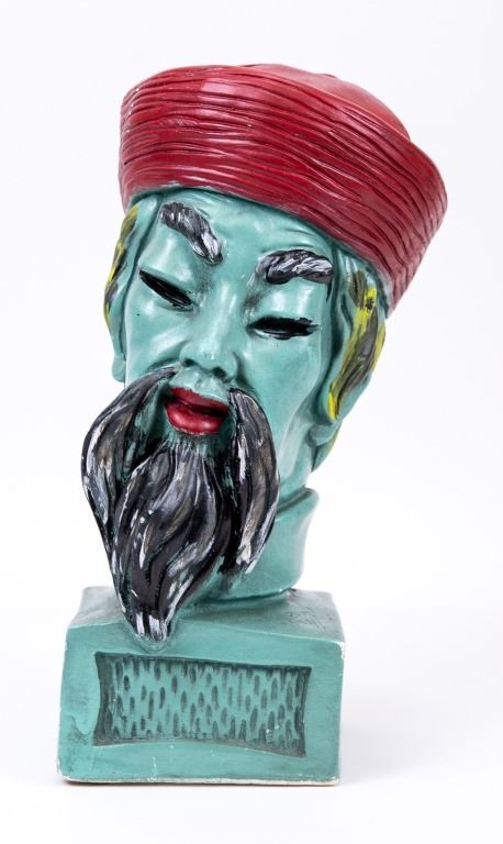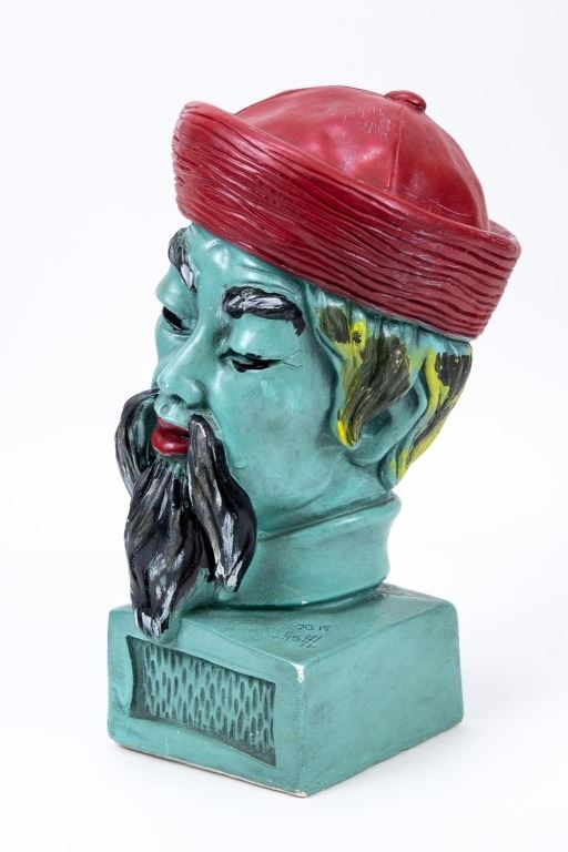 Item/Description: Eye-catching, vibrantly painted ceramic sculpture, bust of Chinese man in hat on pedestal. Wonderful detail and character. Artist signed and dated on base: CASAL, 2015. This work is from the Casal estate. Mr. Casal was a Cuban immigrant who came to the United States in the 1950s. See several of his other works included at this auction.