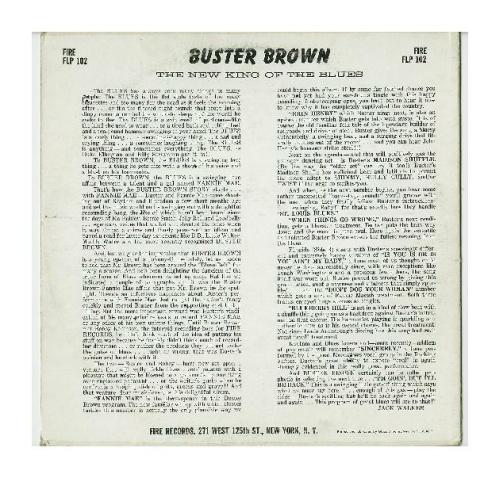 <B>Buster Brown "New King of the Blues" LP Fire Records 102 Mono only (1960).</B></I> Rarer blue cover version includes "Blueberry Hill" and "When Things Go Wrong". Excellent sound on this nice copy. Condition: VG++/VG++.