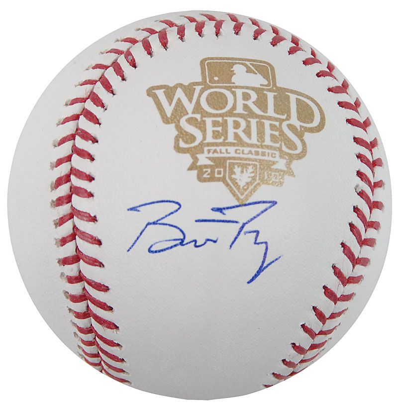 Official Rawlings 2010 World Series League baseball, signed on a side panel below the World Series logo in blue ballpoint. In very fine condition.