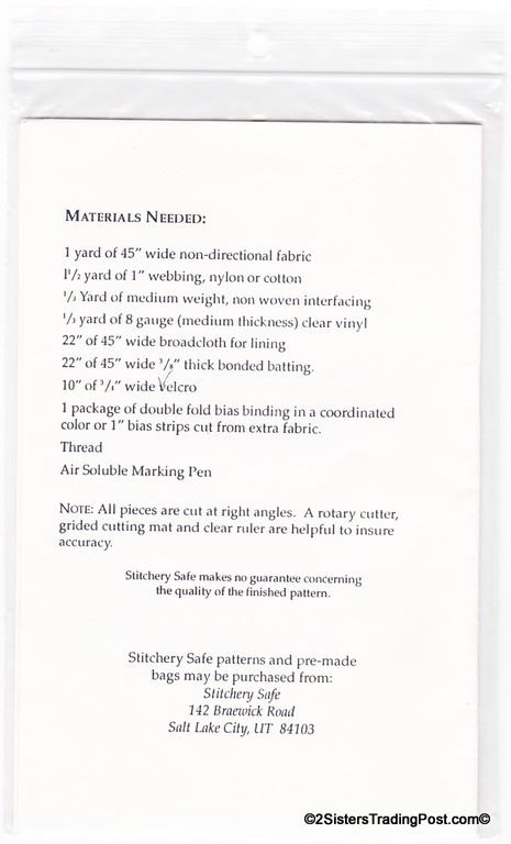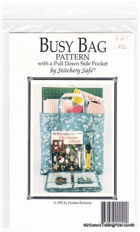 Pattern is for a busy bag with pull down side pocket 1992 Pauline Richards design for Stitchery Safe Patterns. SRP $8.00