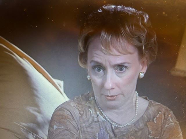 But I'm A Cheerleader (1999) - Nancy's (Mink Stole) screen worn pearl with gold base clip on "Napier" earrings and an antique pearl pendant with a design depicting flowers with pearls as each flower head and pearls around the circular border. Earrings worn in multiple scenes and the pendant is used to clip her scarf to her blouse.